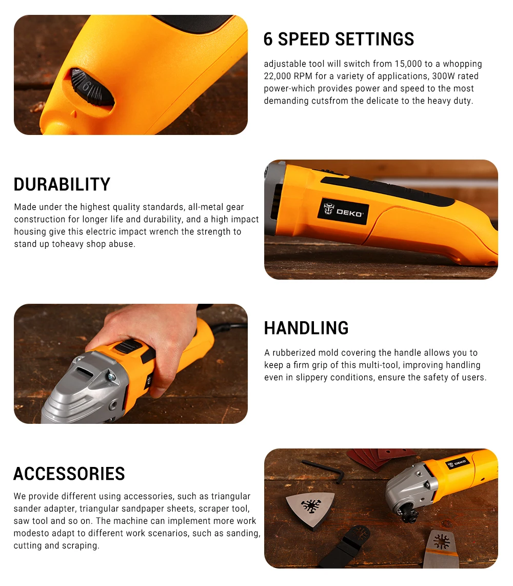 DEKO-herramienta oscilante multifunción DKOM40LD1, cortadora eléctrica de 220V, sierra de velocidad Variable para el hogar, bricolaje, carpintería