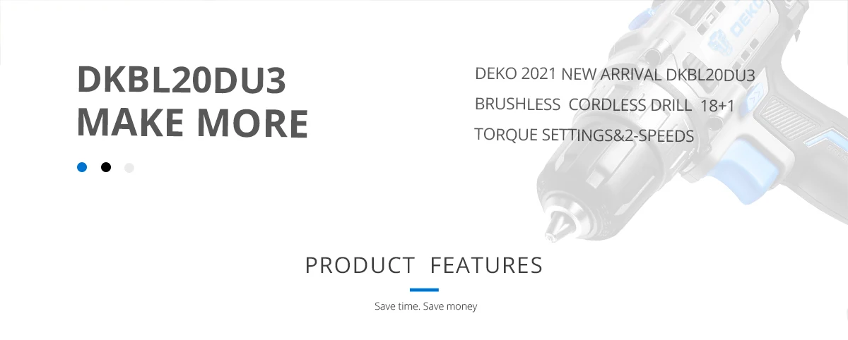 SET3: 1 Taladro Inalámbrico sin escobillas DEKO, 1 * batería de iones de litio de 1,5 Ah 20V, 1 * cargador rápido, 13 * accesorios, 1 * bolsa de algodón Oxford