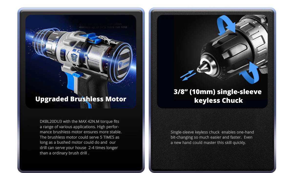 DEKO-Taladro Inalámbrico sin escobillas de 20V, Kit combinado de Mini destornillador eléctrico, herramientas eléctricas de 2 velocidades para carpintería