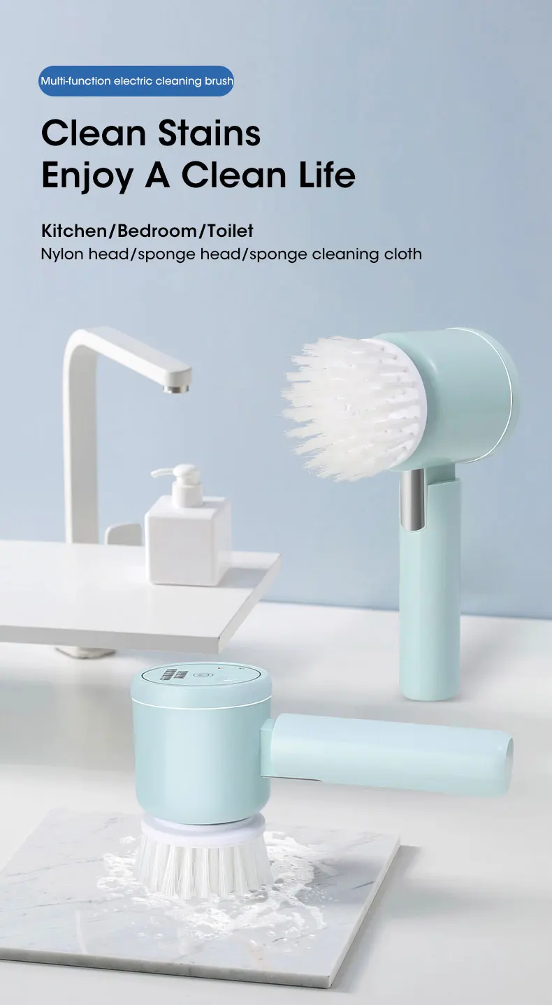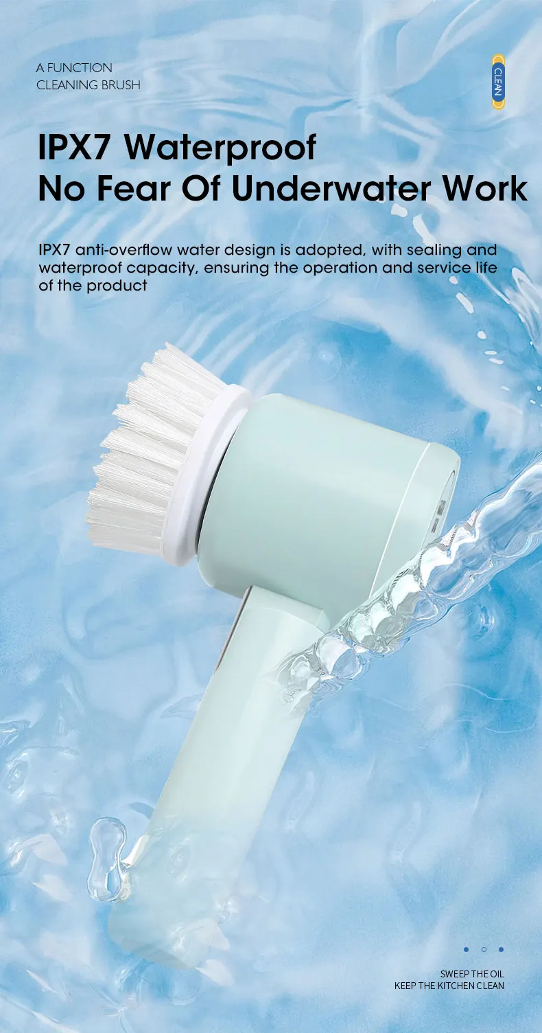 Depurador giratorio eléctrico, cepillo de limpieza inalámbrico para baño, depurador eléctrico con 5 cabezales de cepillo reemplazables, cepillo de limpieza eléctrico