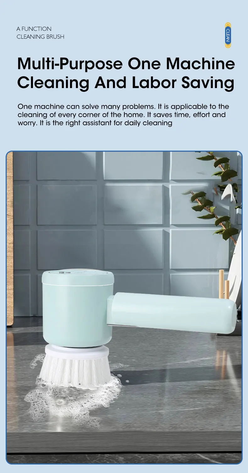Electric Spin Scrubber, Bathroom Cordless Cleaning Brush Power Scrubber with 5 Replaceable Brush Heads, Electric Cleaning Brush