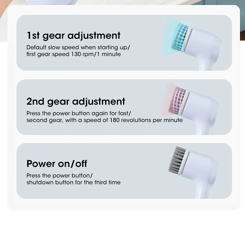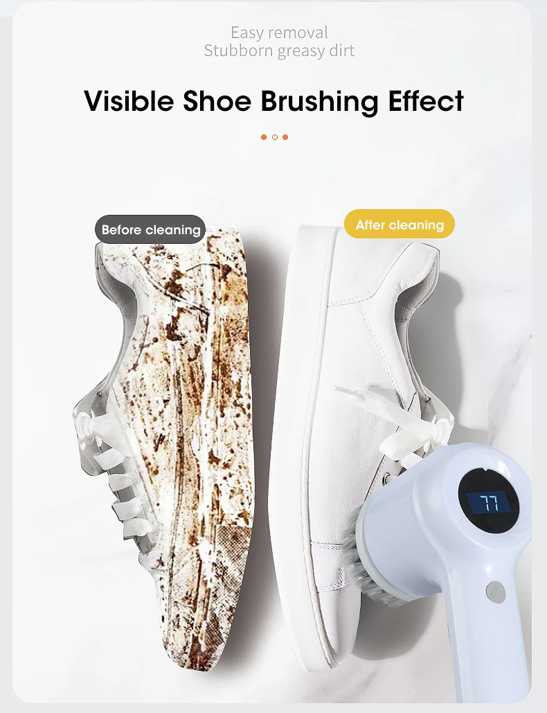 Product accessories: nylon brush head, sponge brush head, cashmere brush head, USB cable, hook, double-sided adhesive.