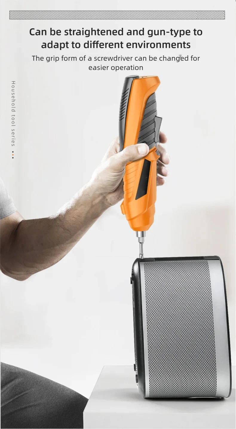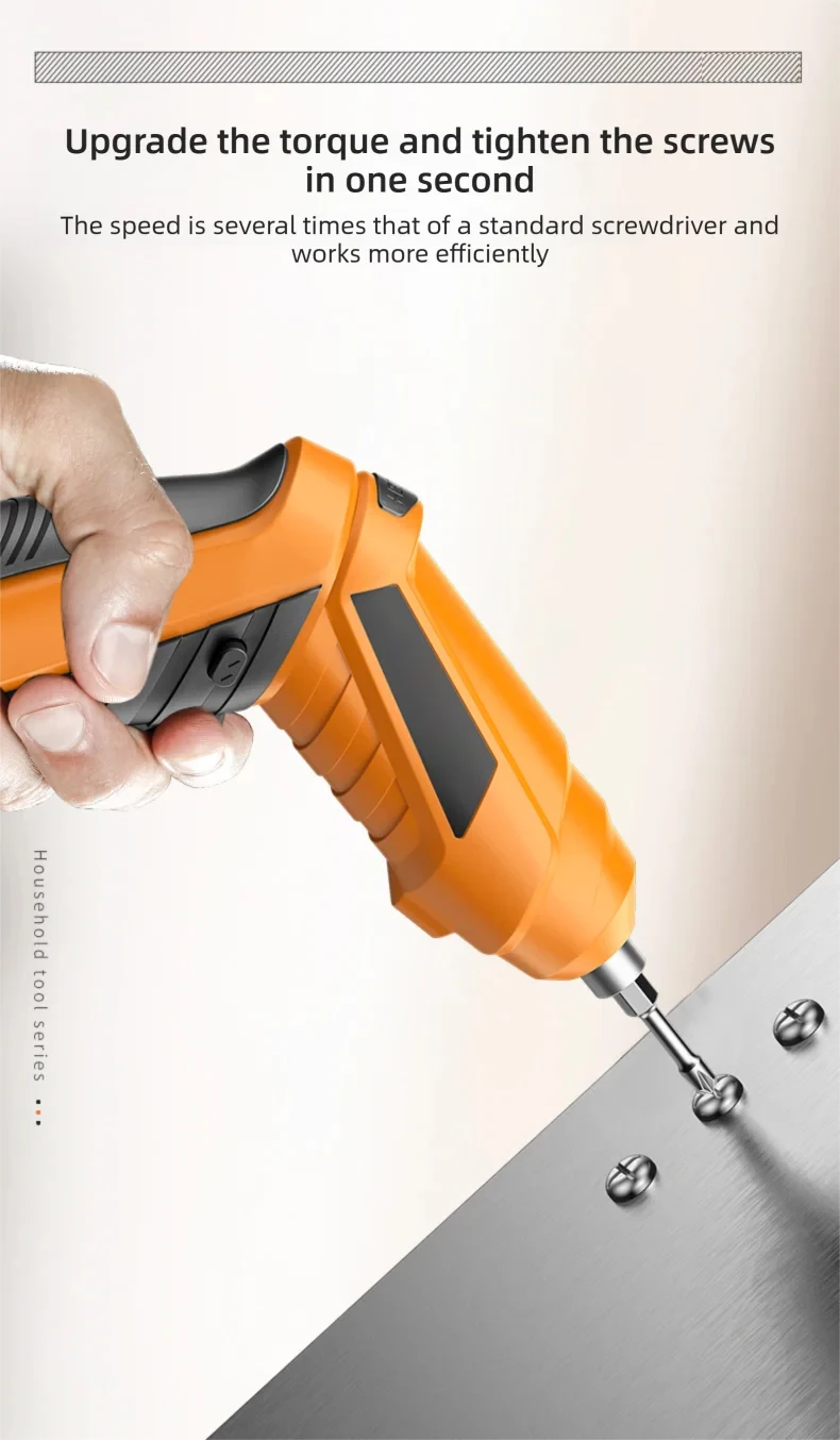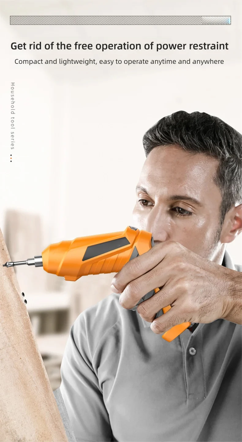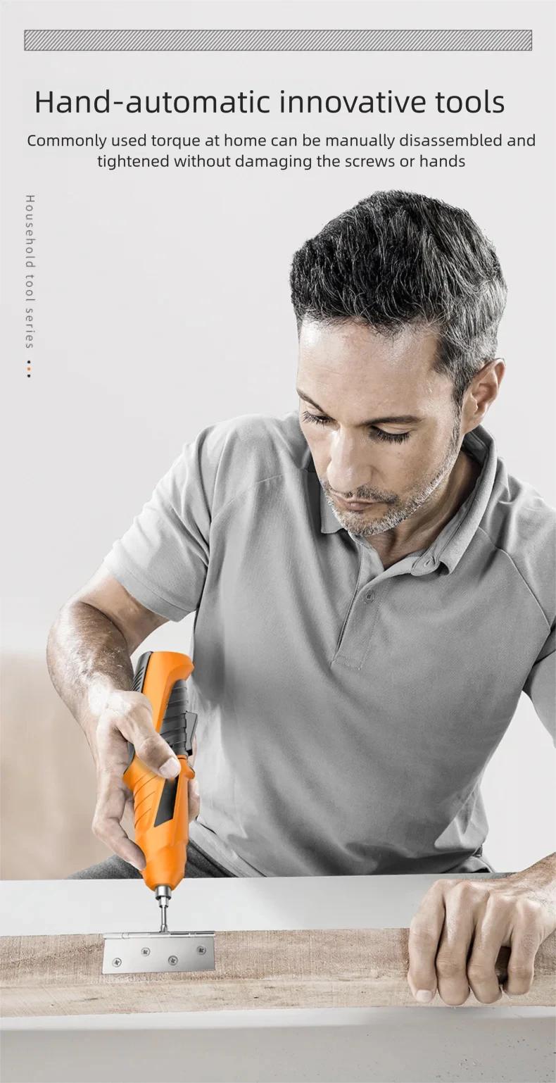 El diseño compacto de este mini destornillador eléctrico hace que sea fácil de manejar e ideal para espacios reducidos, perfecto para uso doméstico.