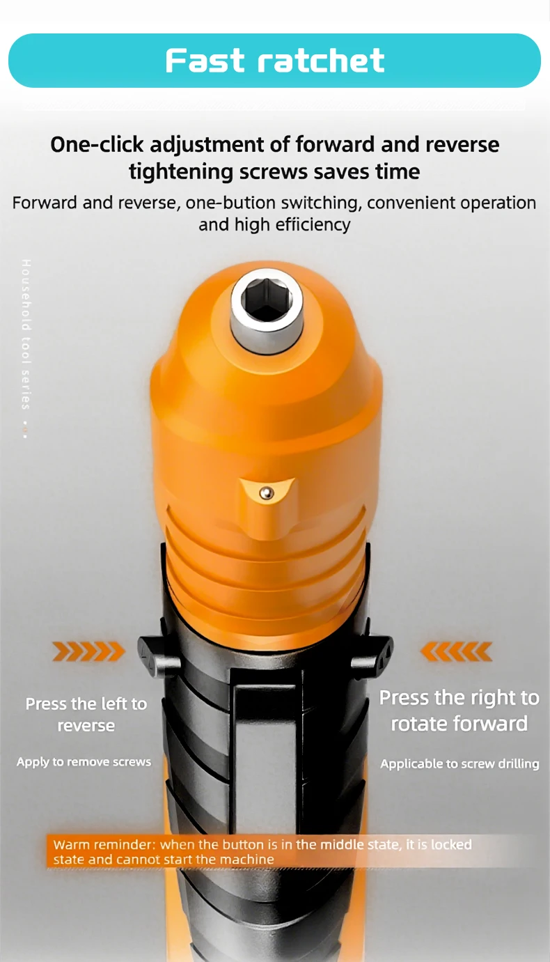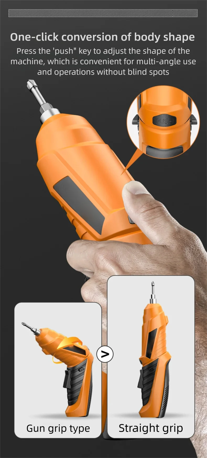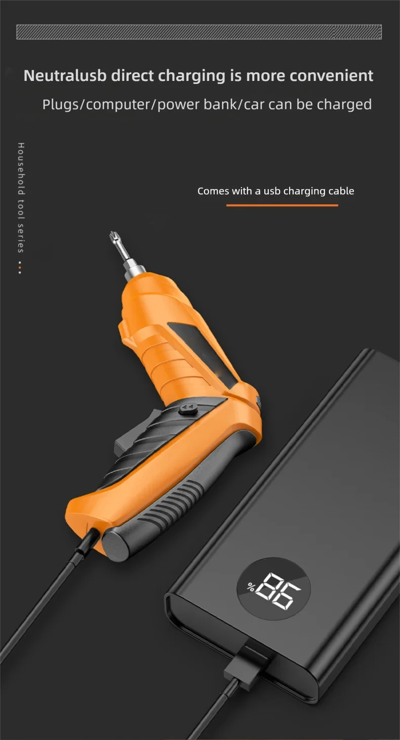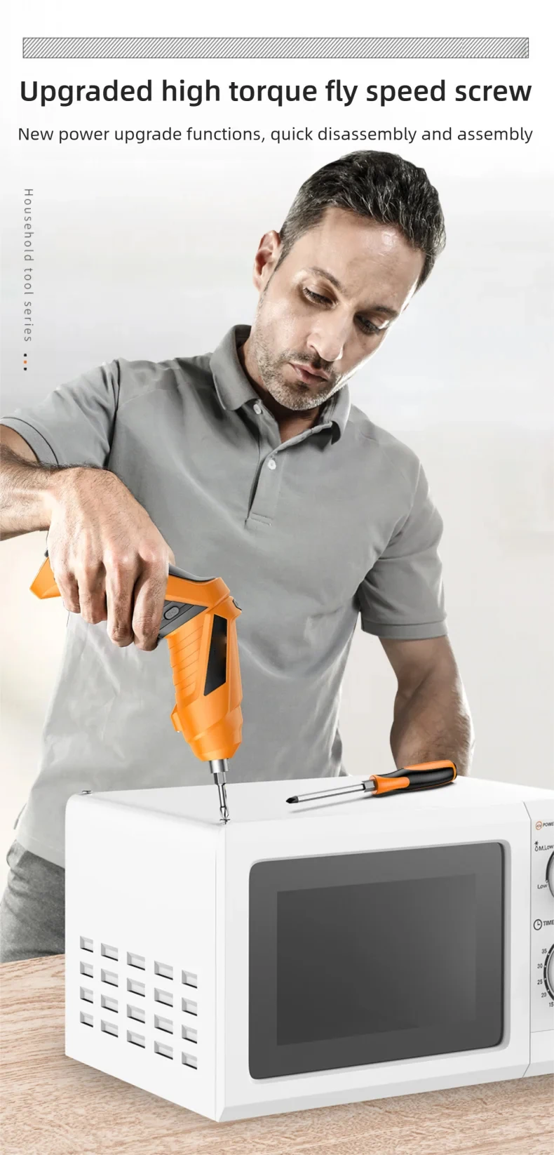 El diseño compacto de este mini destornillador eléctrico hace que sea fácil de manejar e ideal para espacios reducidos, perfecto para uso doméstico.