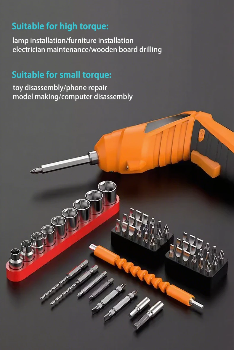 ¡Un verdadero kit todo en uno! Las 31 brocas, brocas de taladro y todas las extensiones cubren todos los trabajos posibles que tengo en casa y en el taller. El soporte magnético y el eje flexible hacen que las tareas sean mucho más fluidas. Esto no es sólo un destornillador; es una estación de herramientas portátil completa.
