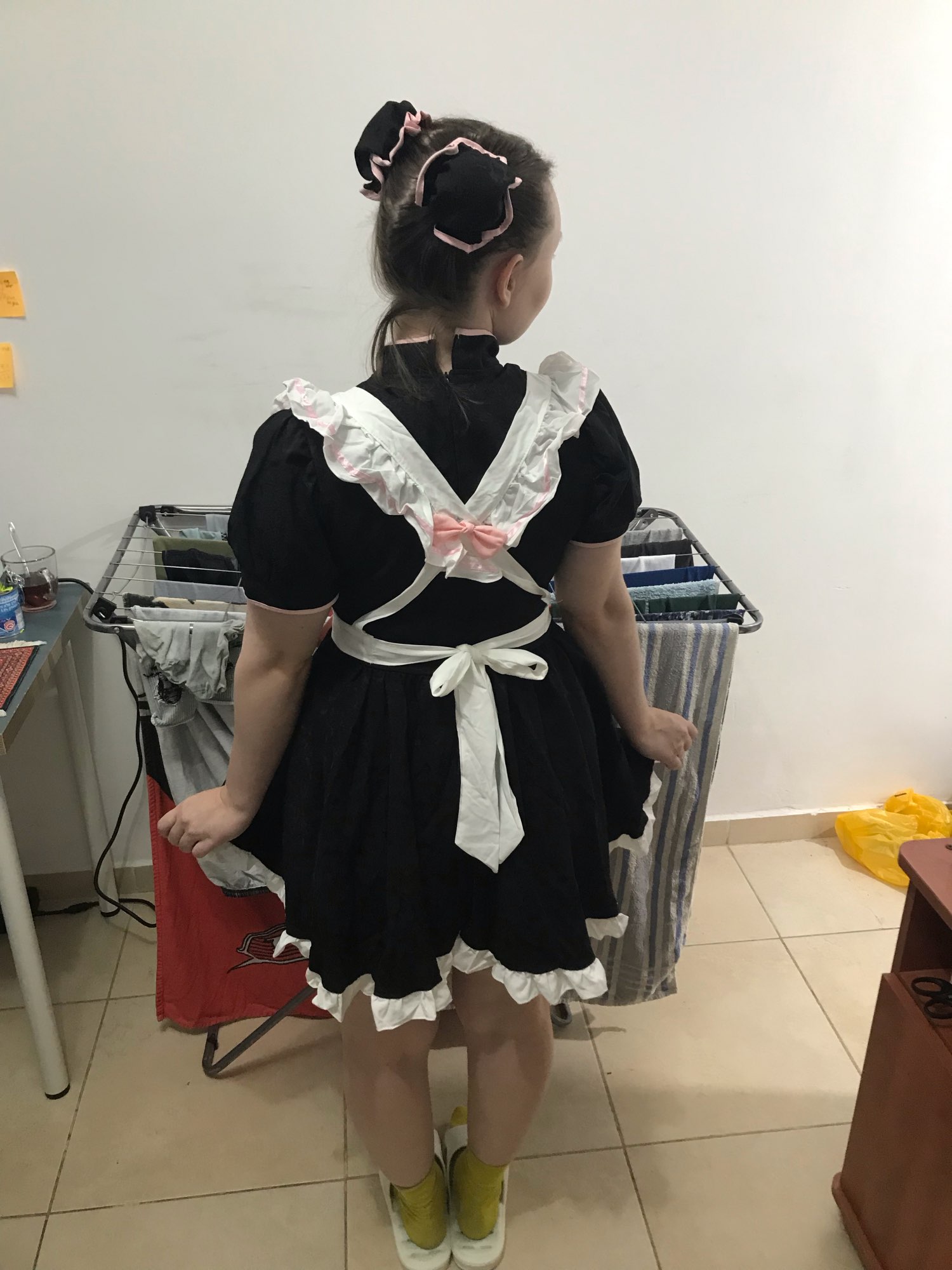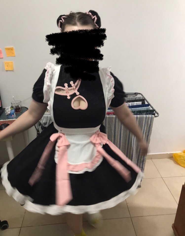 por un momento pensé q no me quedaría pero me queda perfecto y justo, adoro la tela ya q no es una tela corriente como otros trajes de maid q compré, estoy satisfecha con mi compra