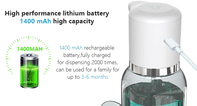 Nota: Dispensador de enjuague bucal recargable con portavasos: con batería incorporada de 1400 mAh/impermeable IPX4/luz roja parpadea: recordatorio de batería baja; la luz verde parpadea: se está cargando; La luz verde siempre está encendida: está completamente cargada.