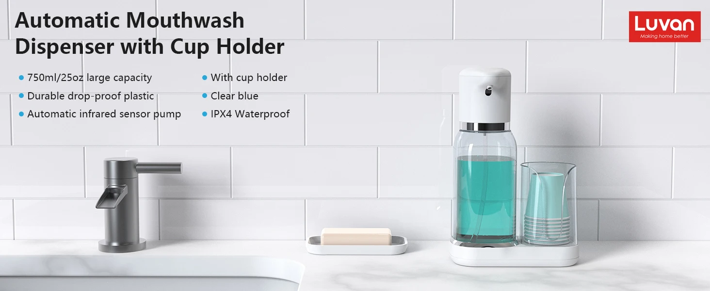 Este es un dispensador de enjuague bucal elegantemente simple y fácil de usar.El sensor infrarrojo fácil de usar hace que el soporte para enjuague bucal sea una opción inteligente para uso en el baño.Puedes ponerlo en la cocina, el baño o en cualquier lugar que desees, y su forma hermosa y elegante también lo convierte en un gran regalo para tus amigos.