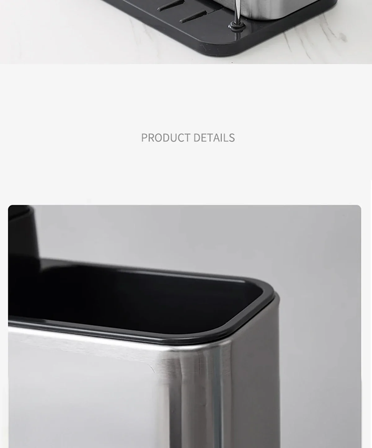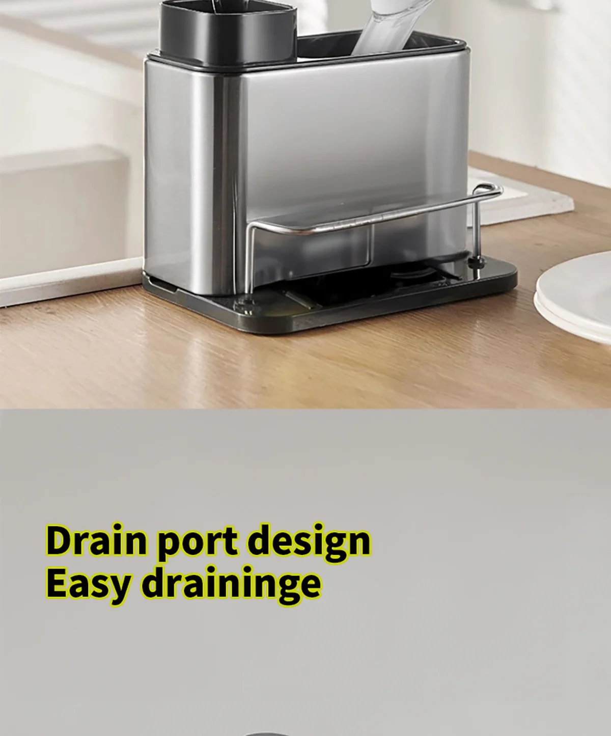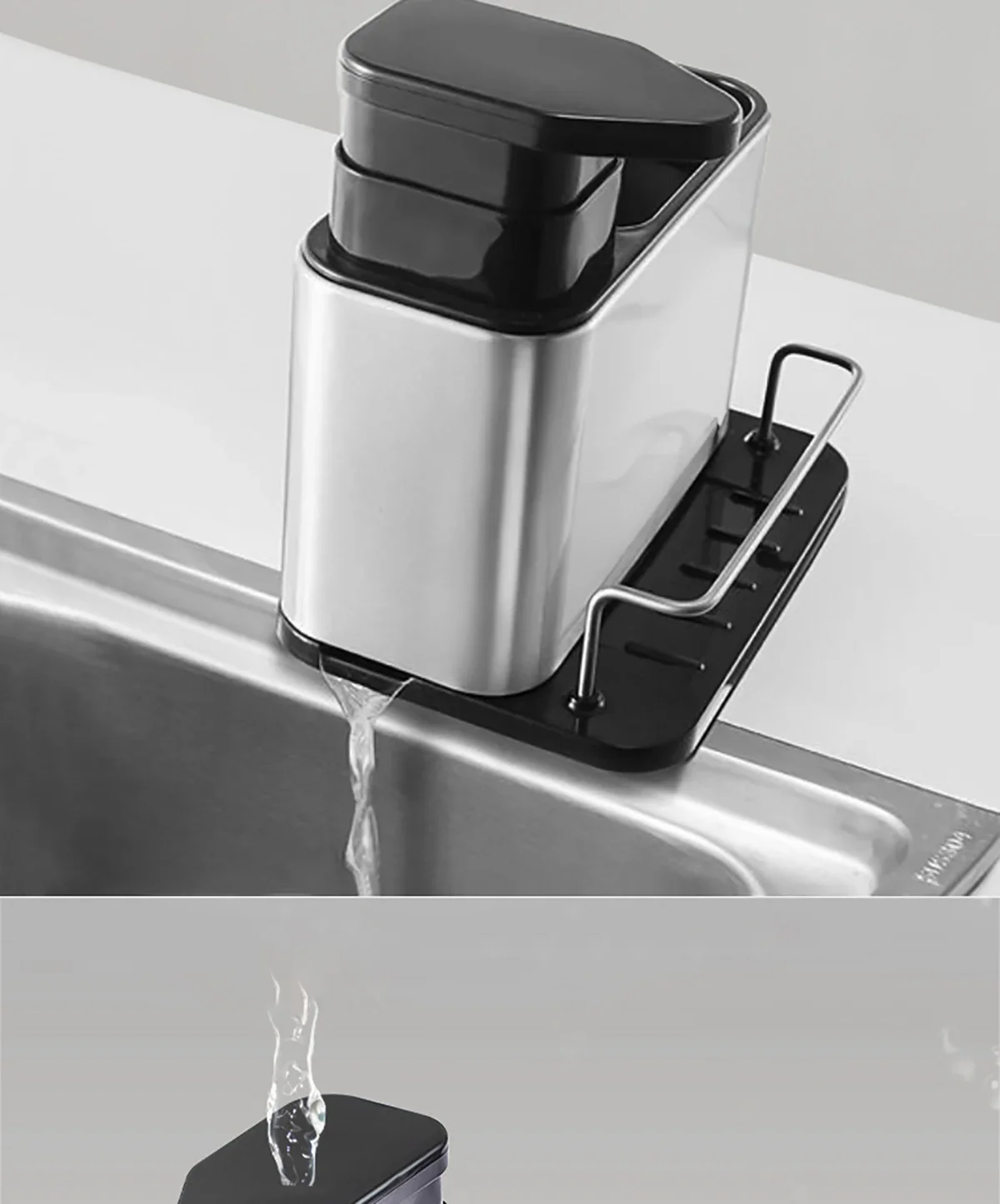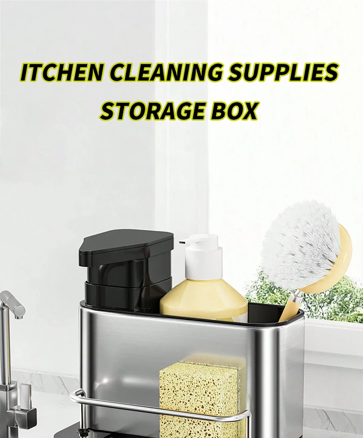 Aplicación: Adecuado para usar alrededor del fregadero de la cocina, se utiliza para almacenar esponjas de limpieza, cepillos y otros productos de limpieza, mientras distribuye detergente, conveniente para el trabajo diario de limpieza de la cocina.