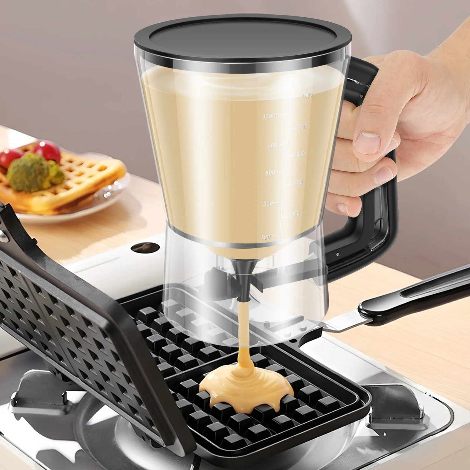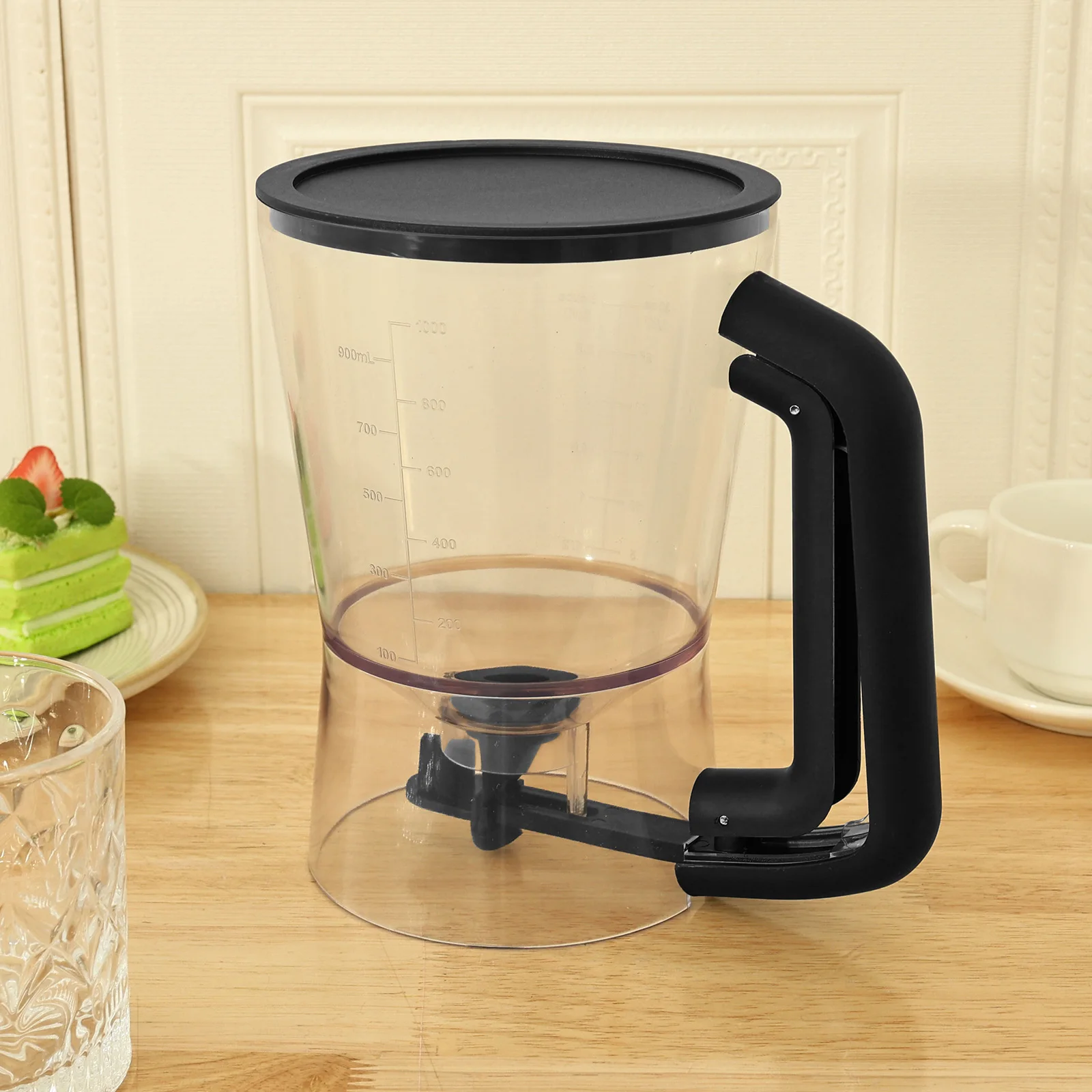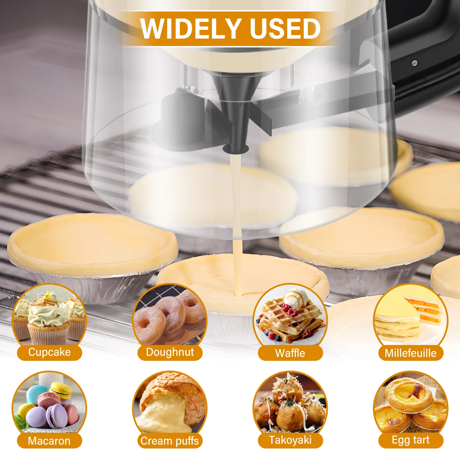 【3 tazas de gran capacidad】Este dispensador de masa para pasteles adopta 3 tazas de gran capacidad, adecuado para reuniones familiares o reuniones con amigos.La amplia apertura en la parte superior permite verter y mezclar fácil y rápidamente la masa para panqueques, cupcakes o gofres, lo que reduce la necesidad de recargas y mejora la eficiencia de la cocción.