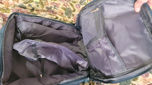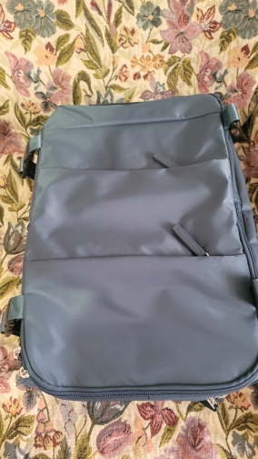La mochila es enorme, mucho más grande de lo que imaginaba. Lo comparé con mi bolso de a bordo y es realmente bastante similar. Es super espacioso, tiene varios bolsillos y compartimentos. El material parece ser de buena calidad, parece resistente al tacto. El bolsillo delantero interior tiene un material resistente al agua. ¡El color verde pavo real es hermoso! Muy contento con mi compra