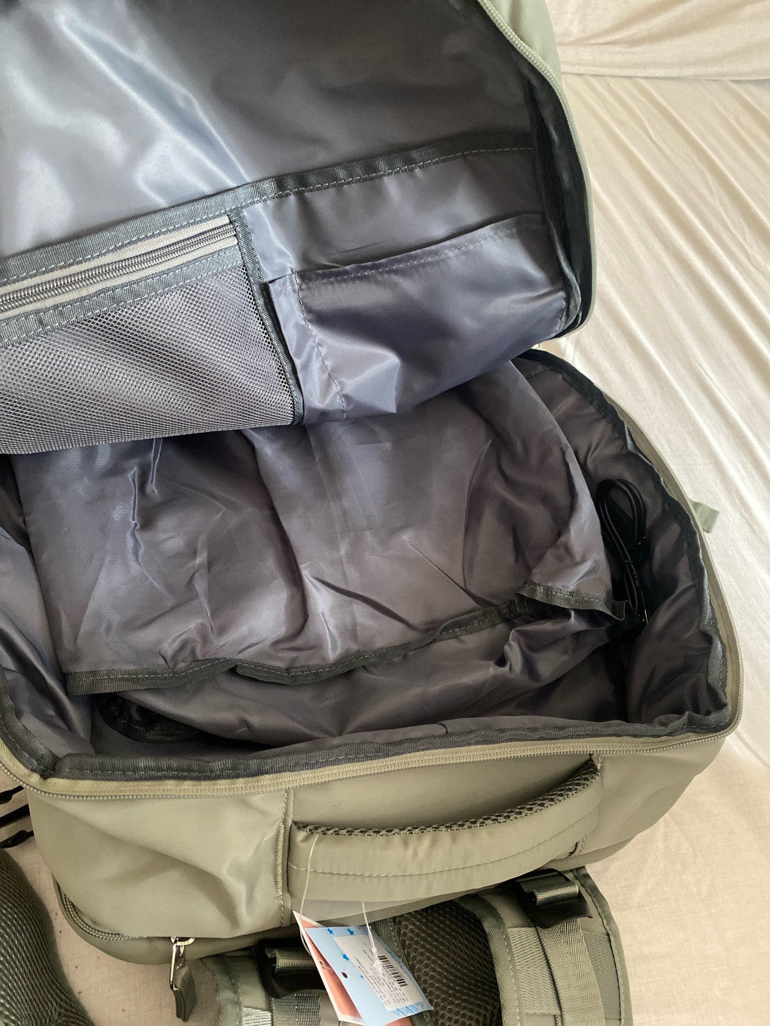 Bolsa grande y fuerte con múltiples bolsillos. Perfecto para viajar. Compartimento principal se abre completamente para un fácil embalaje. Correas de hombro muy de apoyo para llevar el peso. Mucho más robusto de lo que esperaba, pero todavía relativamente ligero para una bolsa tan grande. Compartimento portátil podría caber un 17 "portátil fácilmente. Excelente compra a pesar del precio muy barato.
