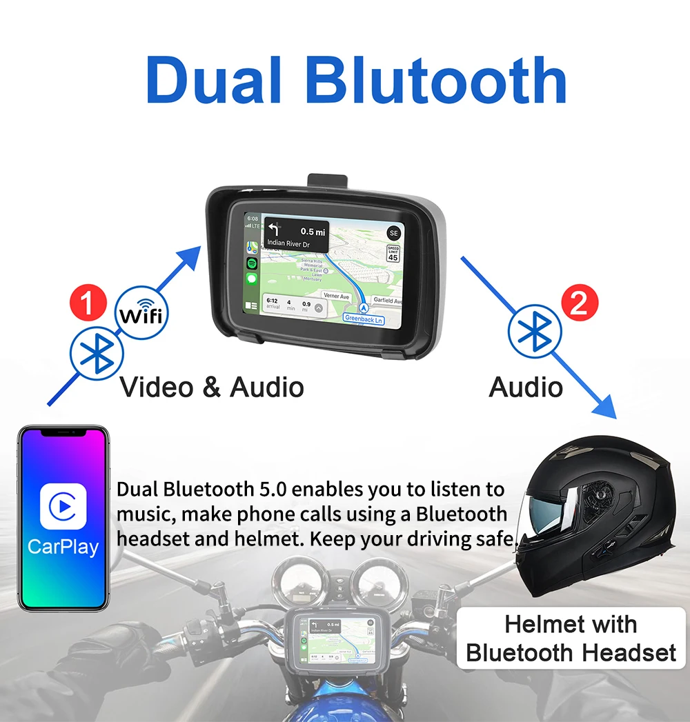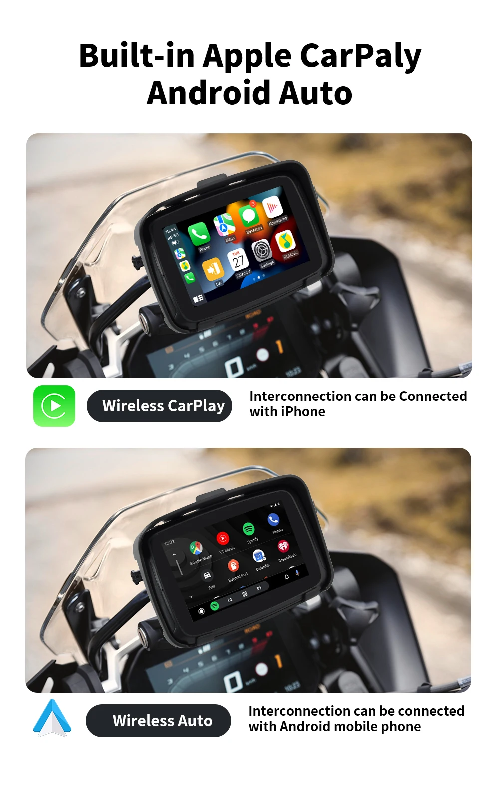 • 5-inch Portable GPS Screen :The EKIY 5 inch Motorcycle Wireless Apple Carplay Android Car Portable Navigation GPS Screen IPX7 Waterproof Display is a compact, portable solution for your navigation needs.