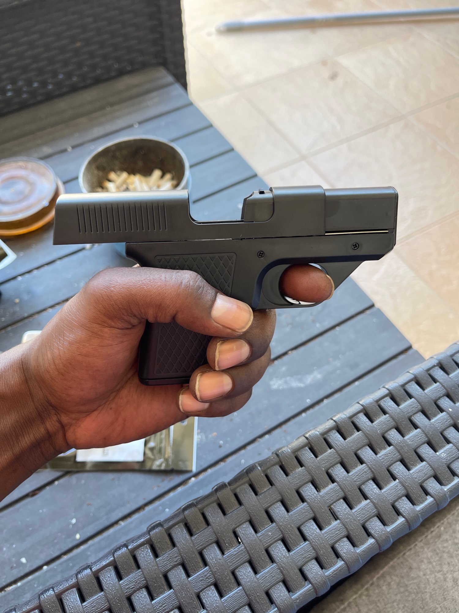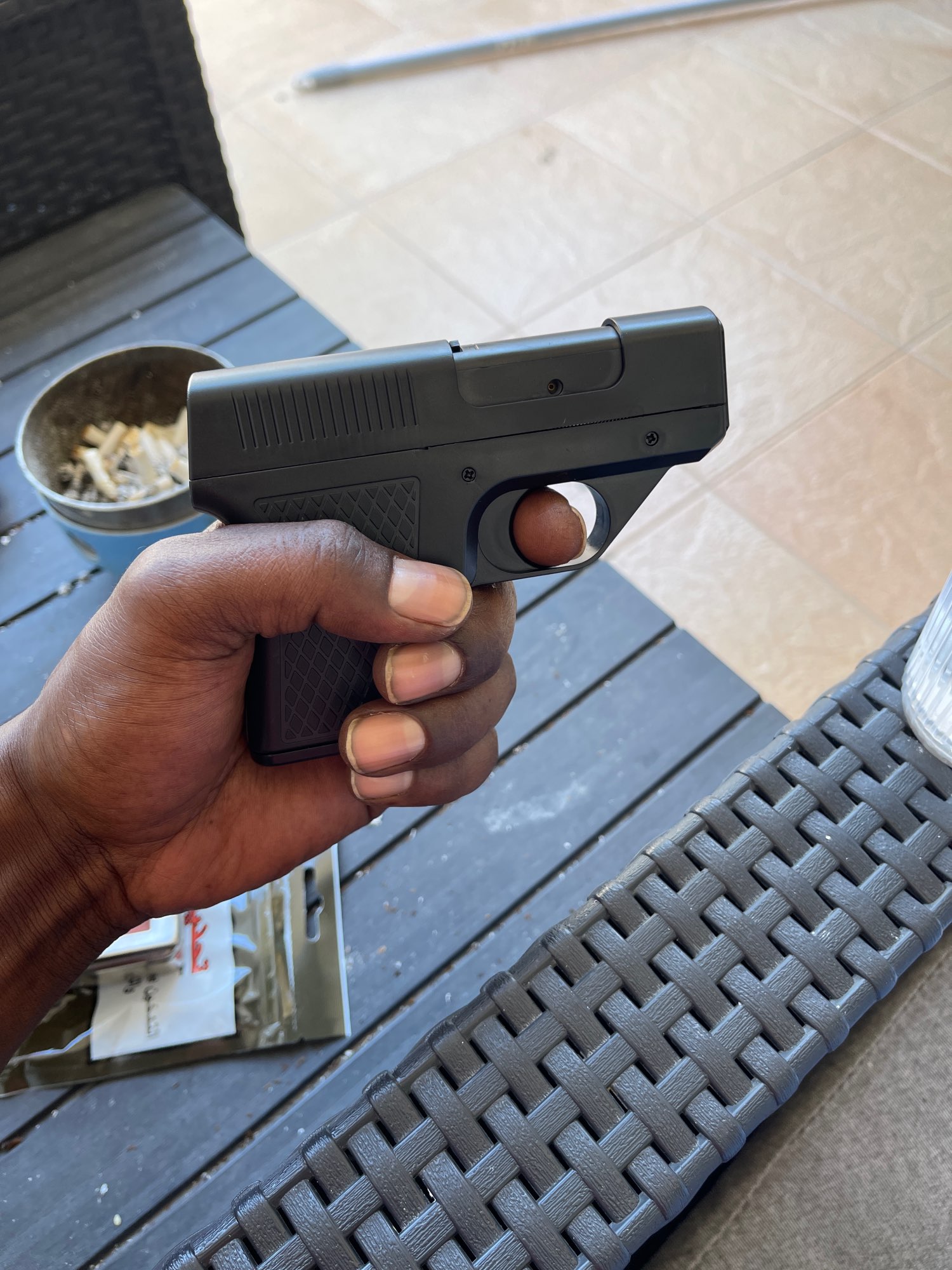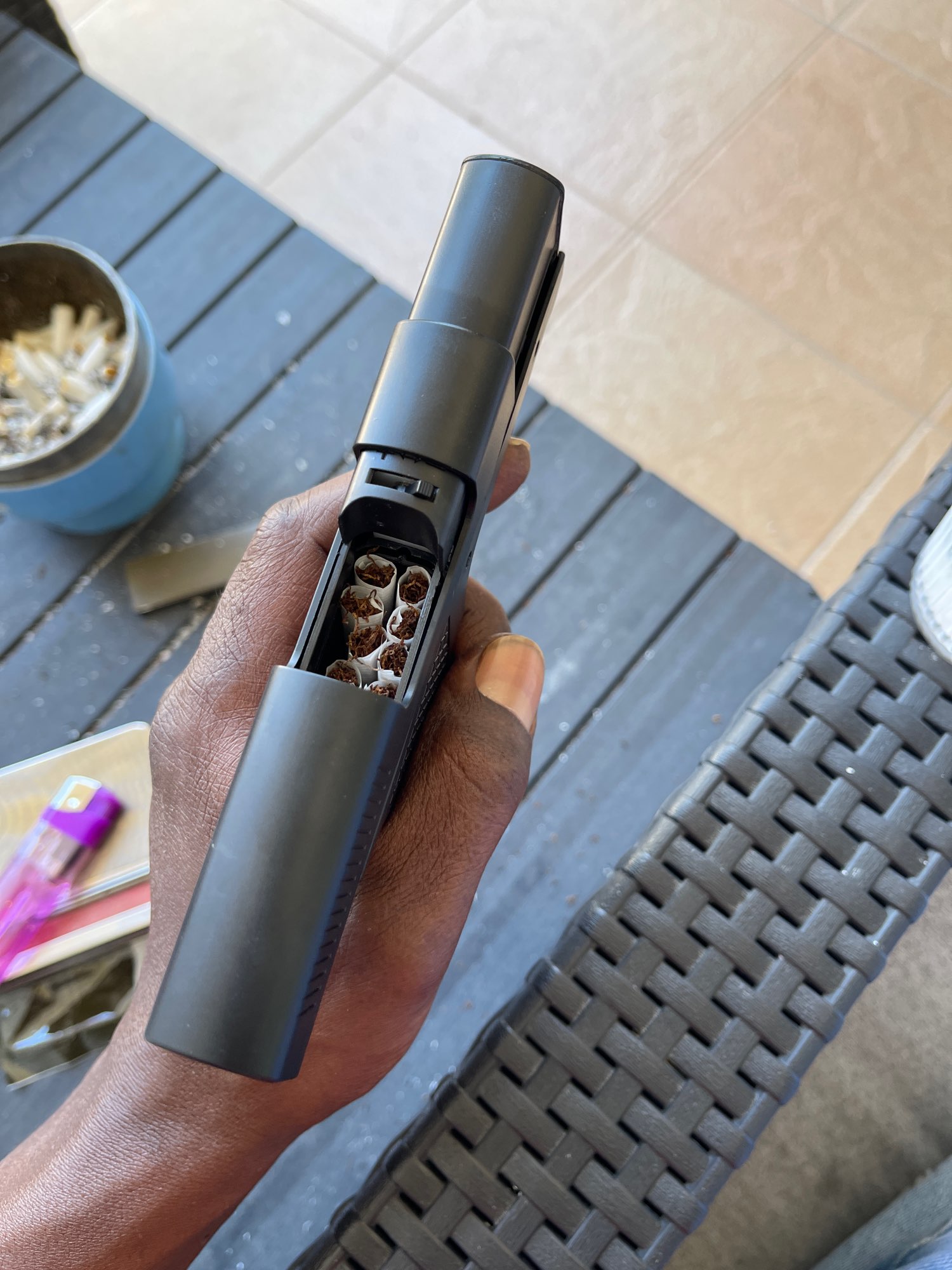Encendedor de Gas butano tipo pistola con Clip, soporte para cigarrillos de tres capacidades, encendedores de llama azul a prueba de viento, regalos para hombres (sin GAS), novedad.
