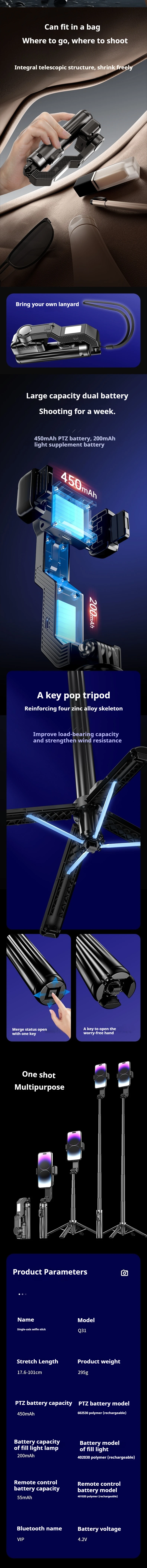 Nombre: palo para selfies de un solo eje