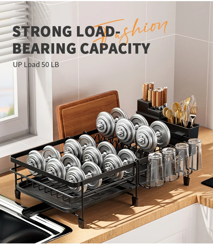 【 MATERIAL DE ALTA CALIDAD 】Estos estantes para platos están hechos de material de acero al carbono sólido de primera calidad. El colador de platos es antioxidante y antioxidante. Todo el estante es tan suave que no tiene que preocuparse por lastimarse las manos.
