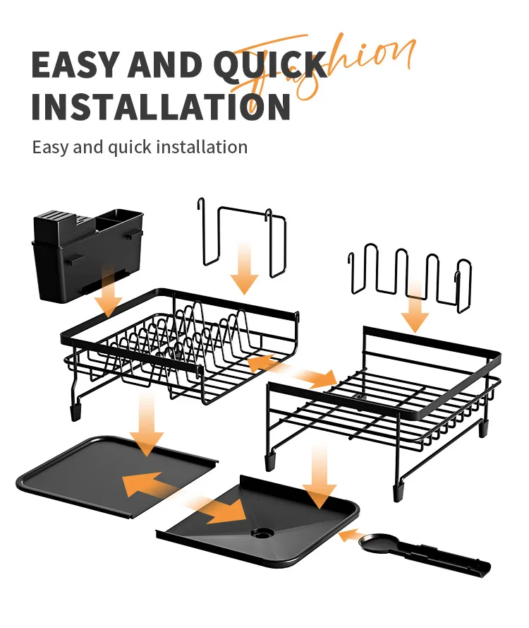 【AHORRO DE ESPACIO Y FÁCIL DE LIMPIAR】El estante para platos es fácil de instalar sin tornillos ni herramientas. Todos los accesorios son extraíbles y se pueden limpiar en cualquier momento para evitar que la suciedad y la grasa permanezcan en las grietas.