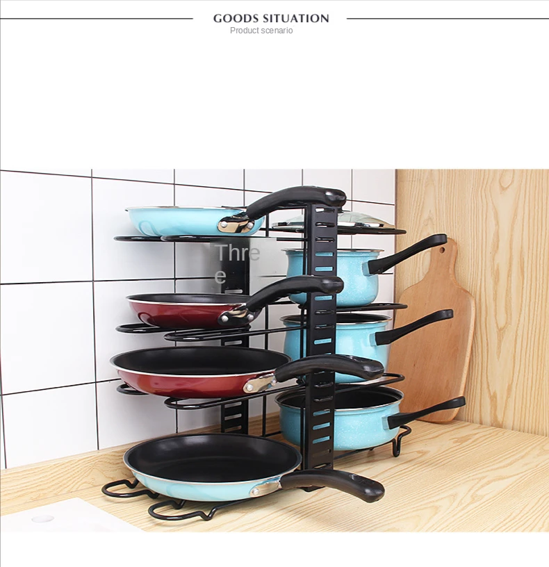 Bueno para organizar sus ollas, sartenes, tapas, utensilios para hornear, utensilios de cocina, tablas de cortar, bandejas, planchas, platos y otros utensilios de cocina en la cocina, gabinete, encimera y despensa. Puede encontrar y sacar el que desee de forma fácil y rápida. Lleve su cocina del desorden al orden, haga su vida más fácil.