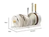 Material duradero: Nuestro estante organizador de ollas y sartenes está hecho de hierro resistente, está diseñado para sostener incluso sus sartenes de hierro fundido más pesadas. Es extremadamente robusto y duradero.
