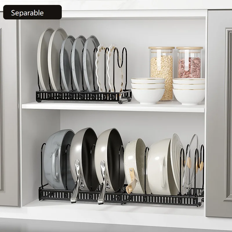 Estante organizador de ollas y sartenes para armario, soporte organizador de tapa de olla expandible con 7 divisores ajustables