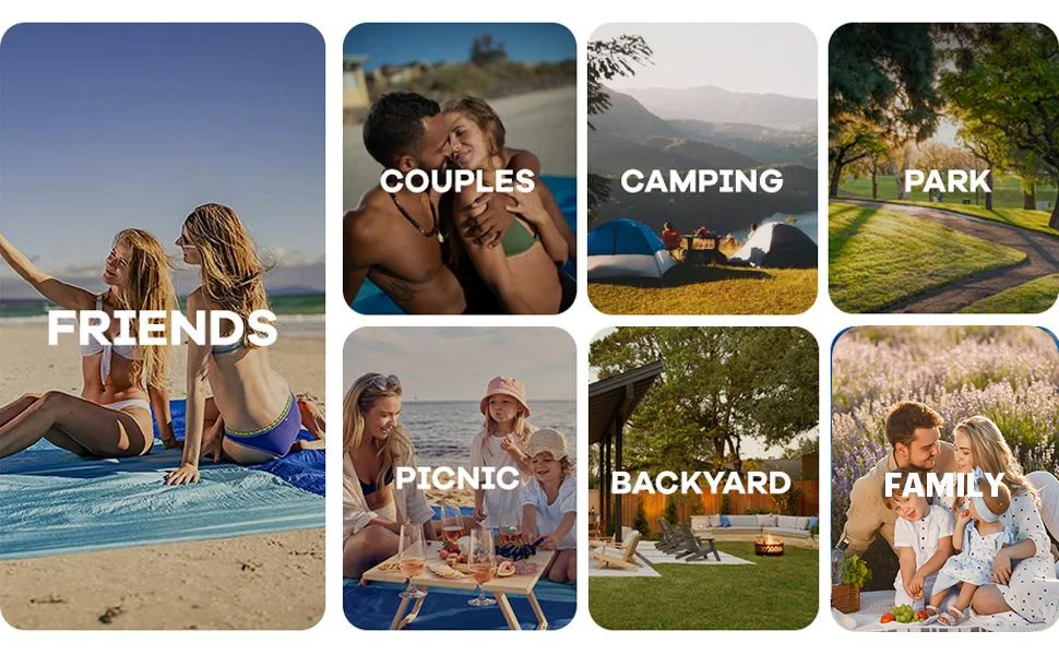 ✔ Multifuncional: ya sea que esté planeando un día de playa, un picnic en el parque o un viaje de campamento, esta manta de playa es su solución preferida.Su estructura duradera garantiza que pueda soportar arena, césped e incluso terrenos rocosos, lo que la convierte en una manta exterior versátil para todas sus aventuras.