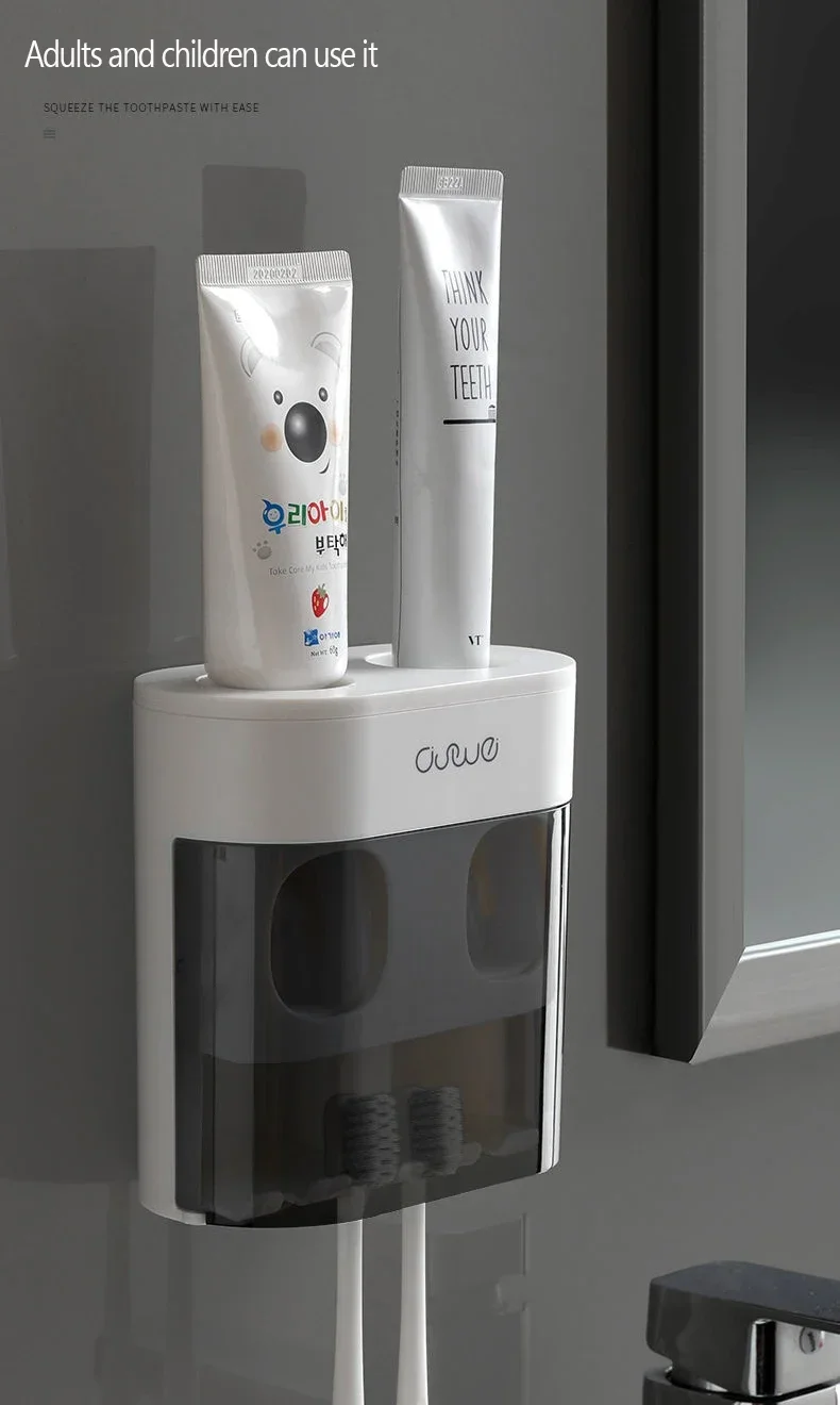 Exprimidor automático de pasta de dientes montado en la pared, dispensador de pasta de dientes, soporte magnético para cepillo de dientes, estante para pasta de dientes, accesorios de baño