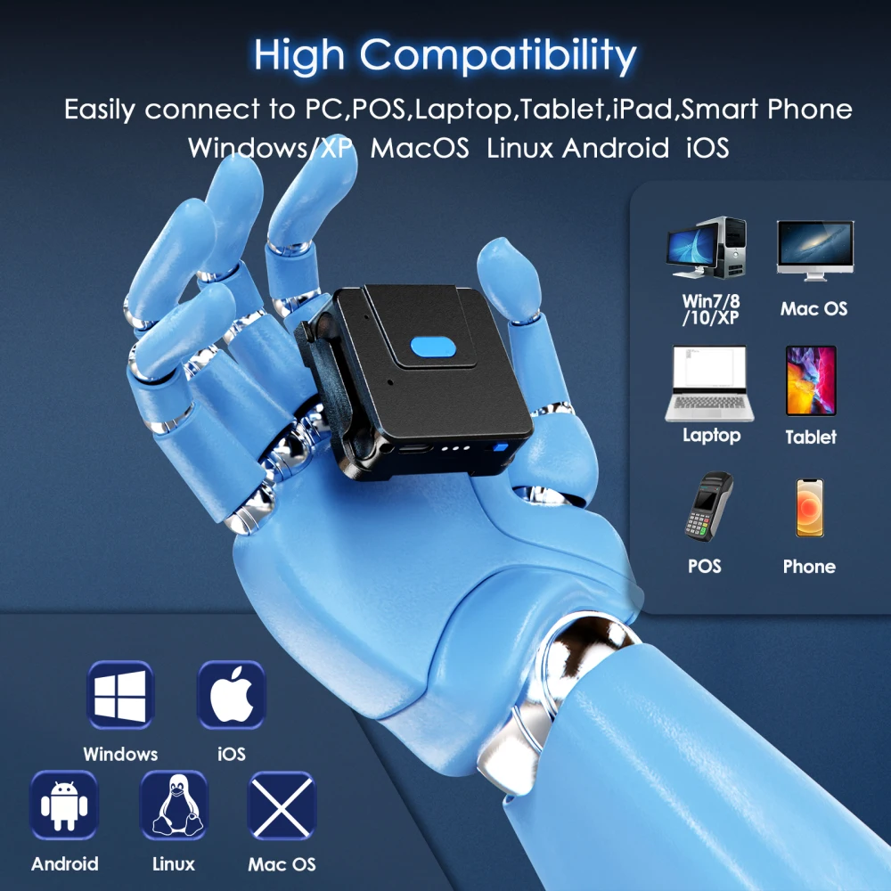 【Múltiples formas de uso, alta flexibilidad de uso】: No es exagerado decir que pagar el precio de un escáner le brinda al menos tres experiencias de uso. ¿Por qué? Cuando se usa en la mano, se convierte en un escáner de código de barras de guante portátil. Cuando se monta en un carrete retráctil, puede usarse como clip inclinable en la cadera. Cuando se monta en un carrete retráctil con Correa, se puede colgar alrededor del cuello. De cualquier manera, el mini escáner de código de barras más ligero que una llave de coche no será una carga para usted.