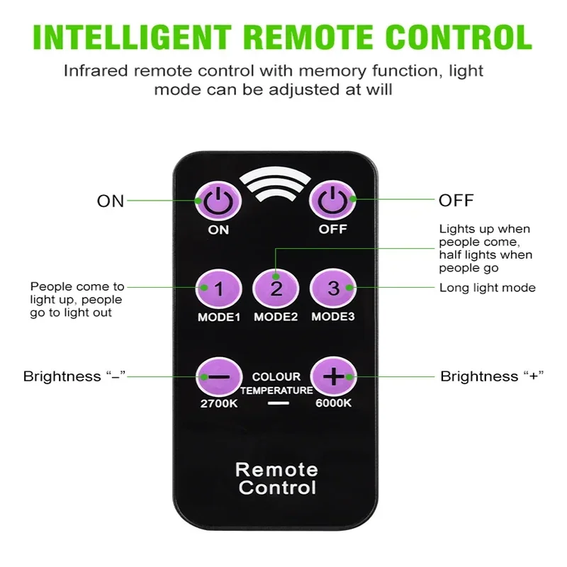 – 3 modos, control de luz + sensor PIR de movimiento + control remoto (opcional).