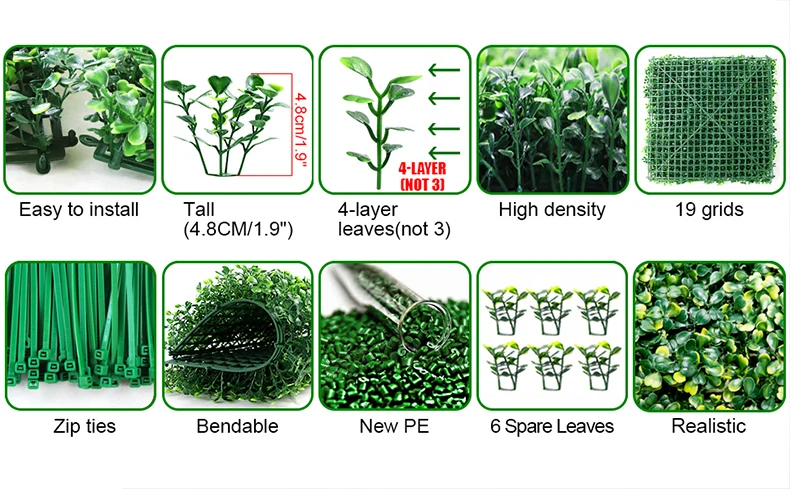 [Tamaño]-Cada panel mide 25cm x 25cm. [El paquete incluye]-1 panel de boj artificial