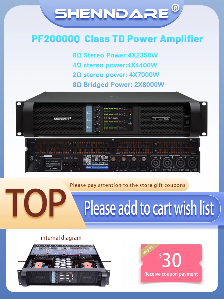 FP20000Q 4x2350W a 8 ohmios amplificador de potencia profesional 4 canales Audio Disco DJ Subwoofer preamplificador clase TD 4X7000W a 2 Ohmios amplificador de altavoz de matriz de línea para puesta en escena