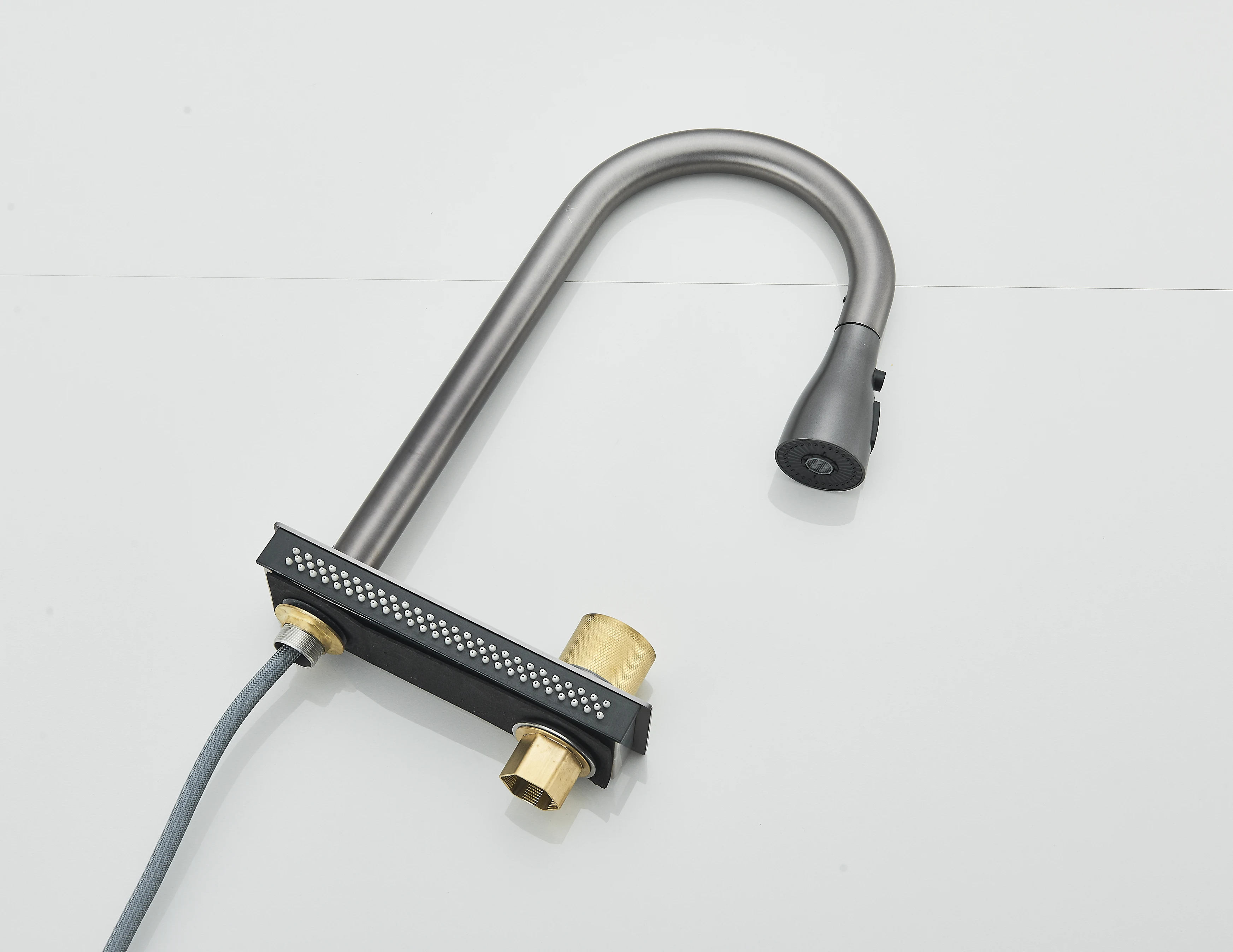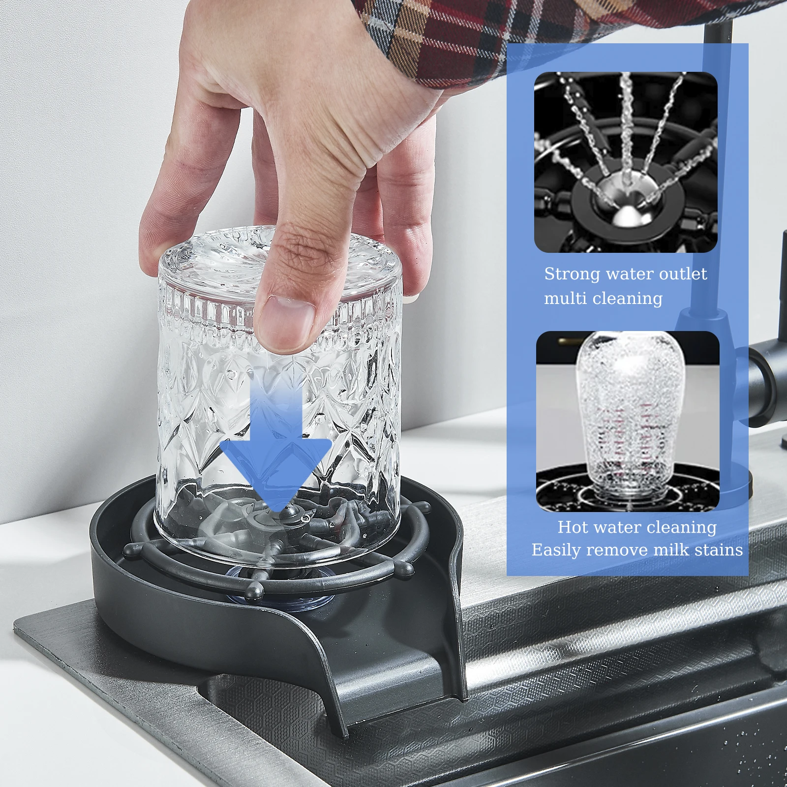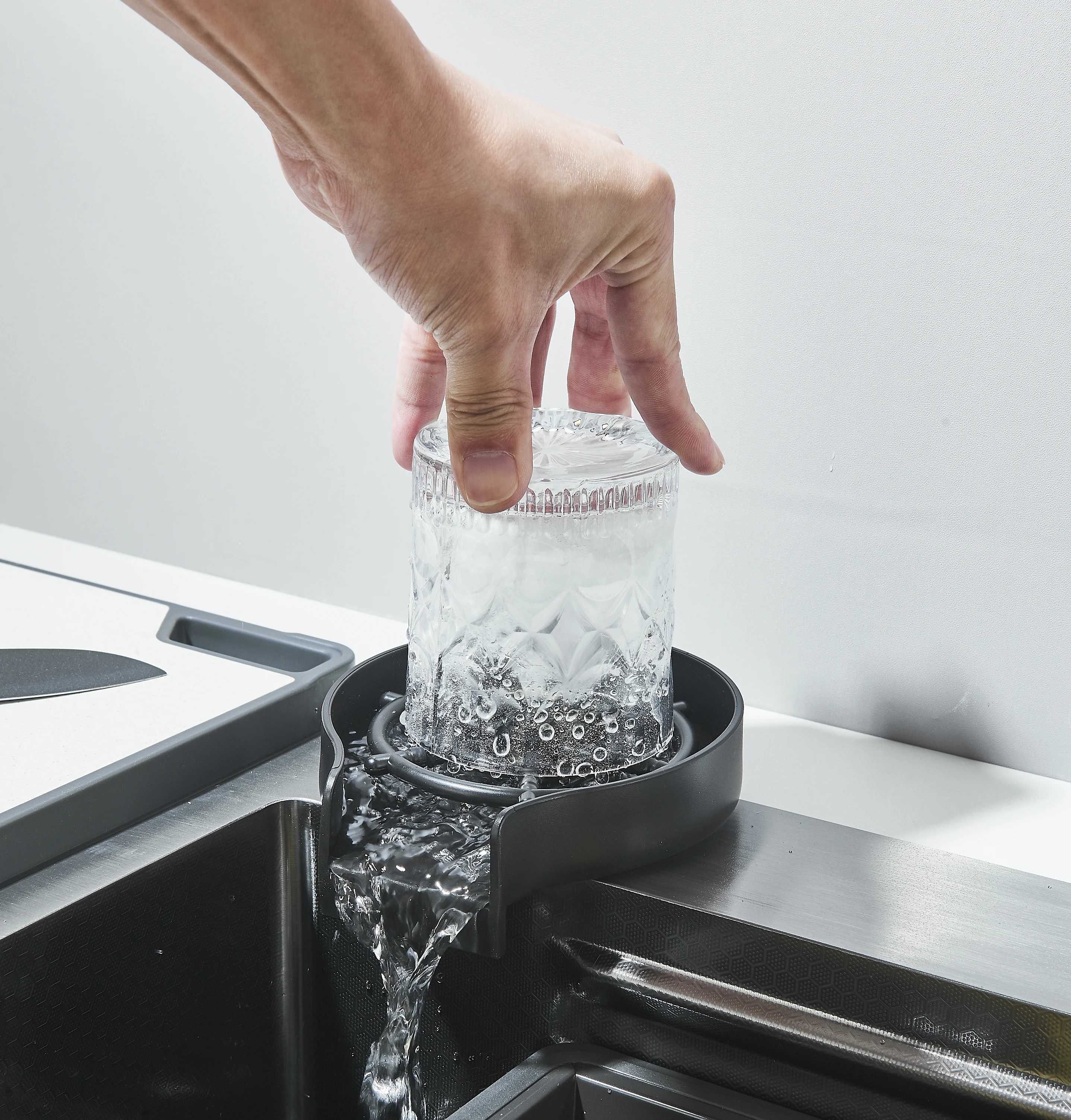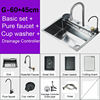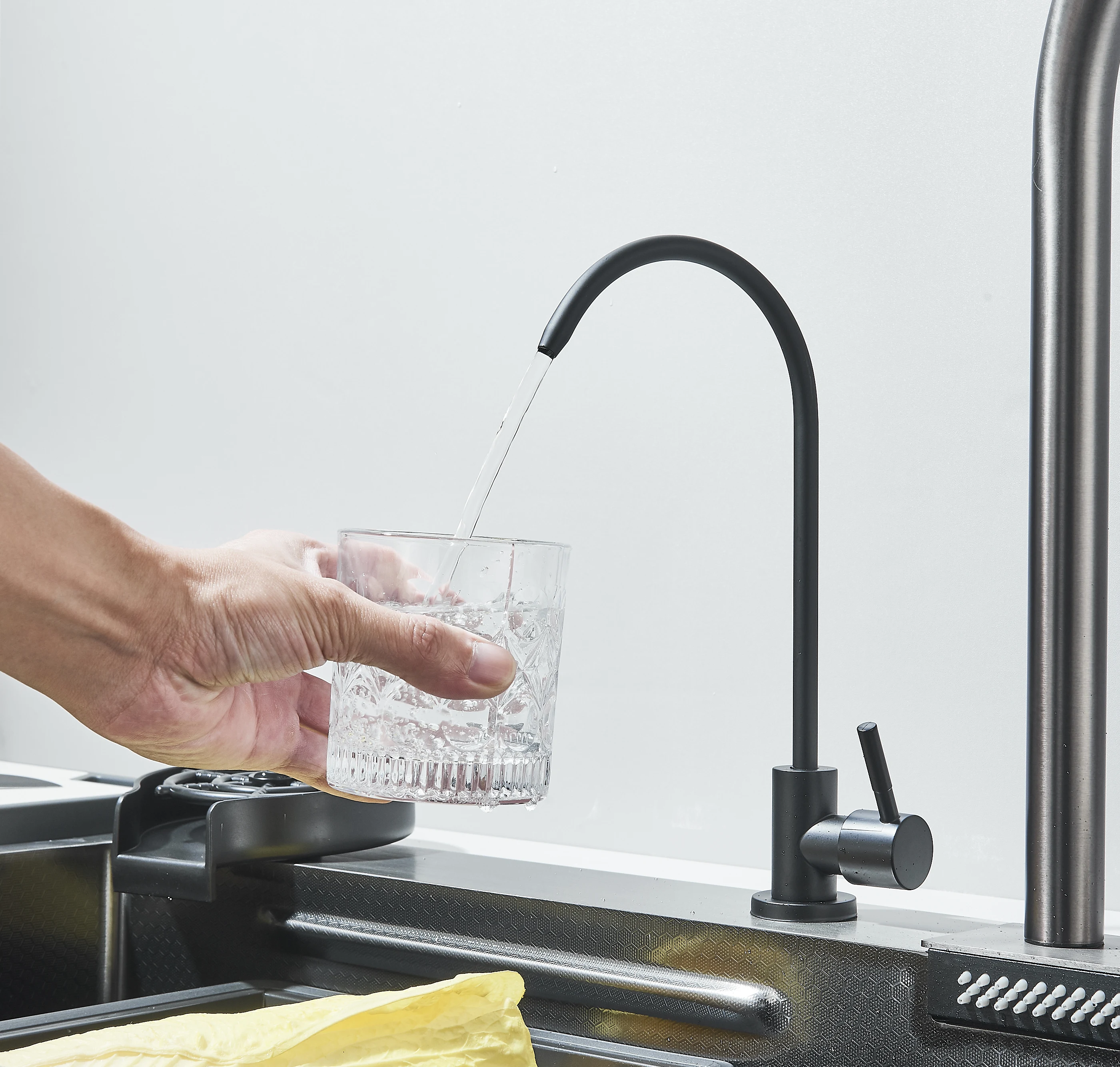 Fregadero de cocina multifunción de acero inoxidable 304, color gris/níquel cepillado, grifo de cascada, tazón individual grande, arandela de taza, grifo puro