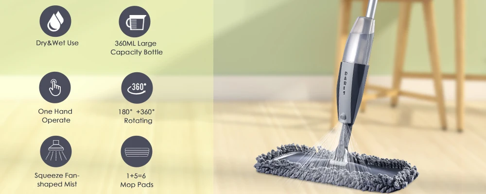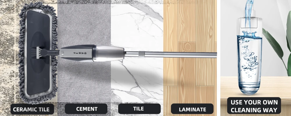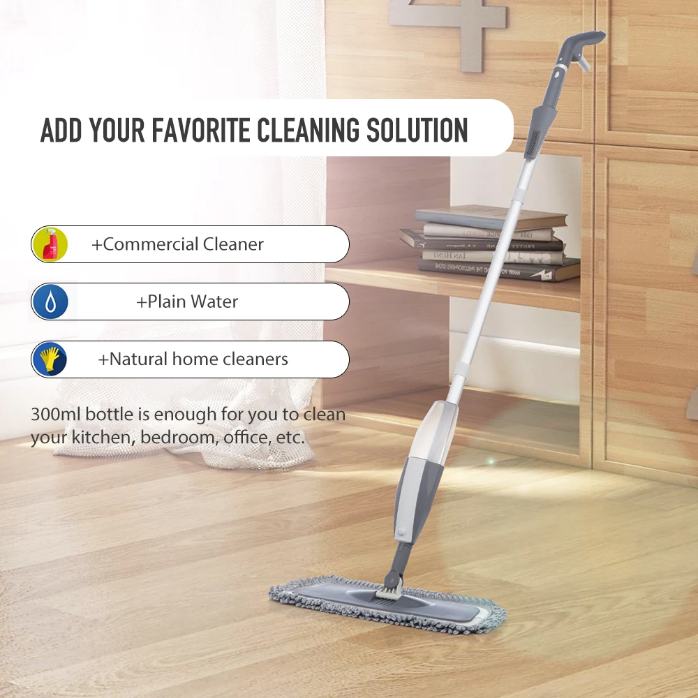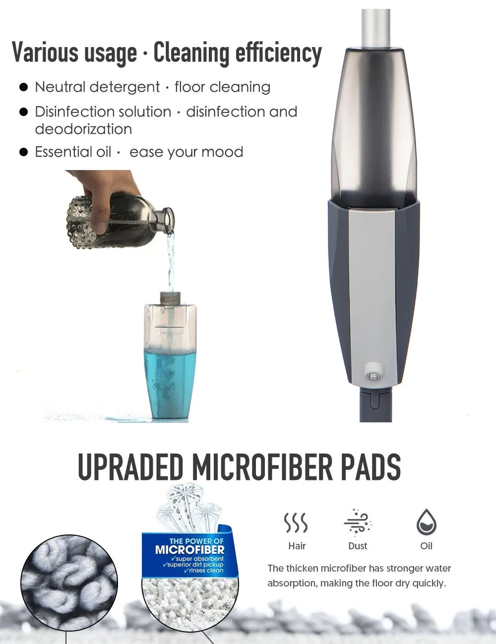 Fregona mágica con pulverizador para suelo de madera con almohadillas de microfibra reutilizables, mango de 360 grados, fregona barredora de cocina para ventanas del hogar, escoba, herramientas de limpieza