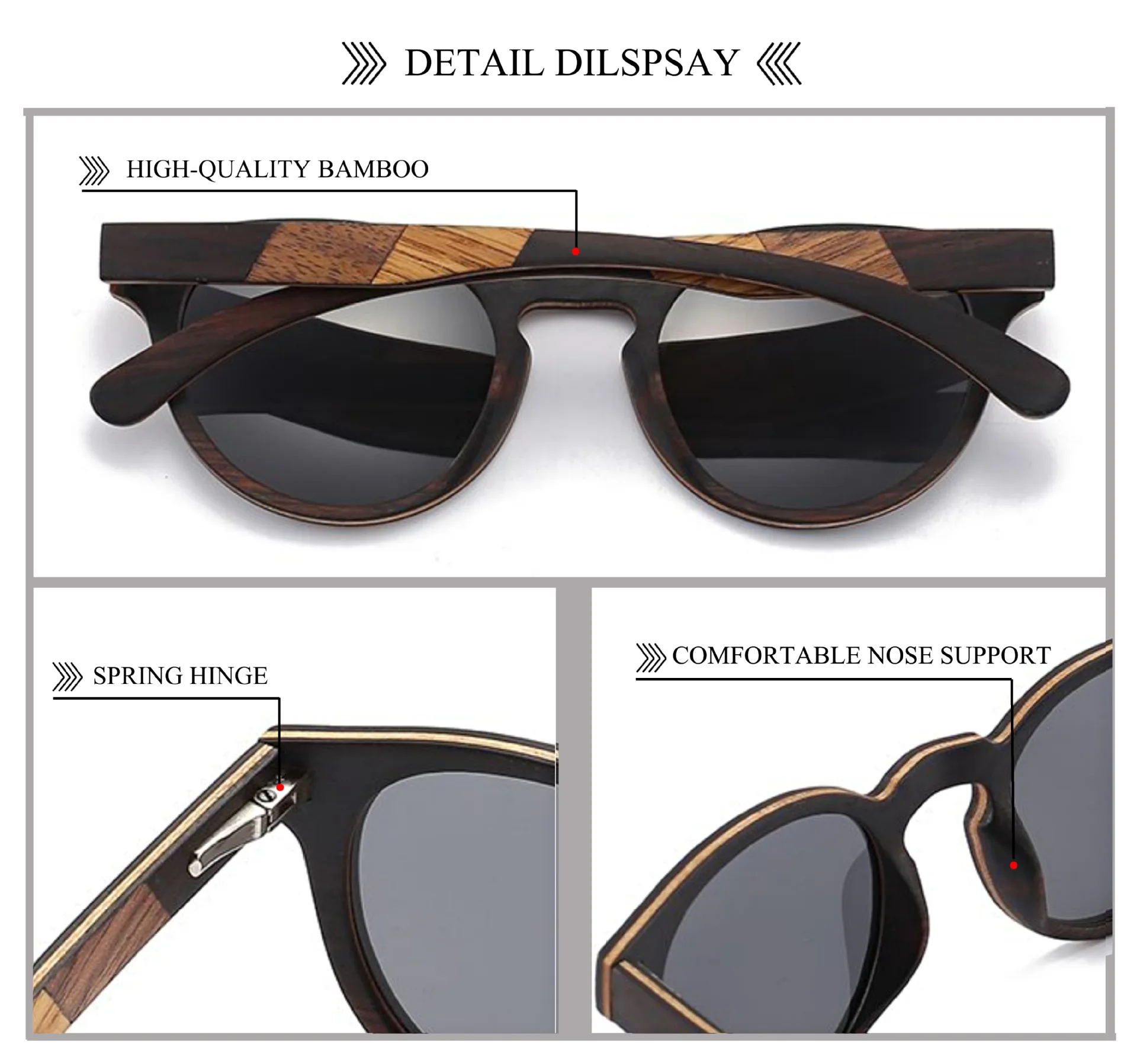 Estas gafas de sol están hechas a mano de nogal natural y ébano, combinación de bambú, dando a las monturas un tono oscuro con reflejos.
