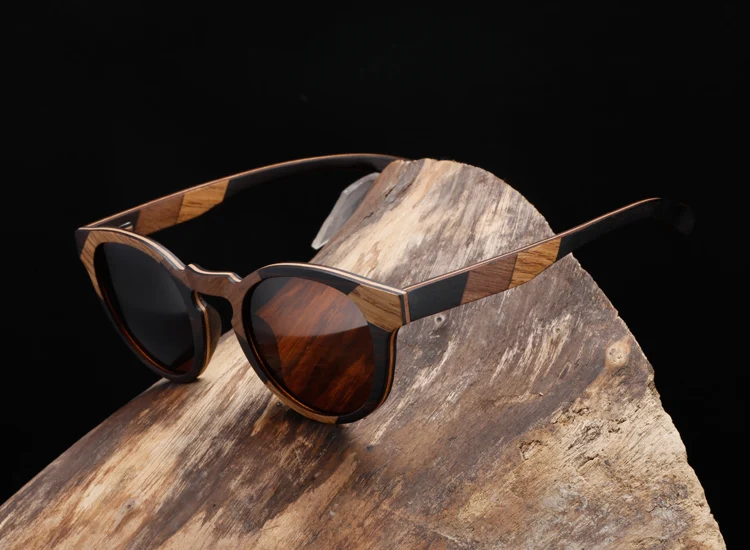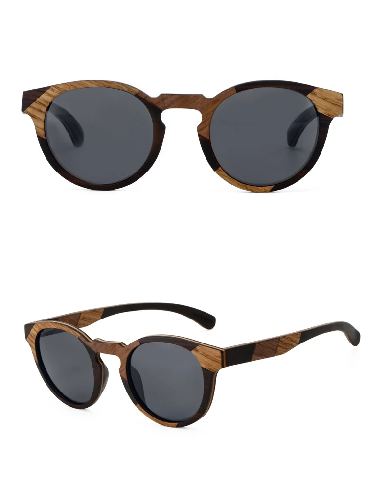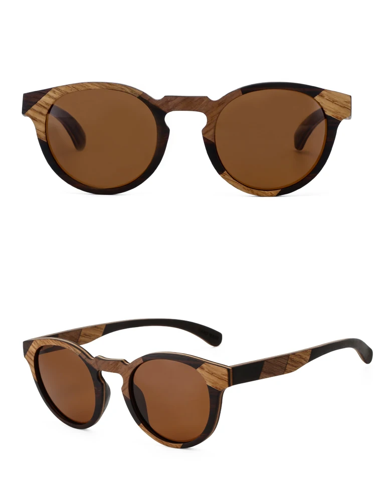 Gafas de sol redondas de madera de diseñador de marca 2022