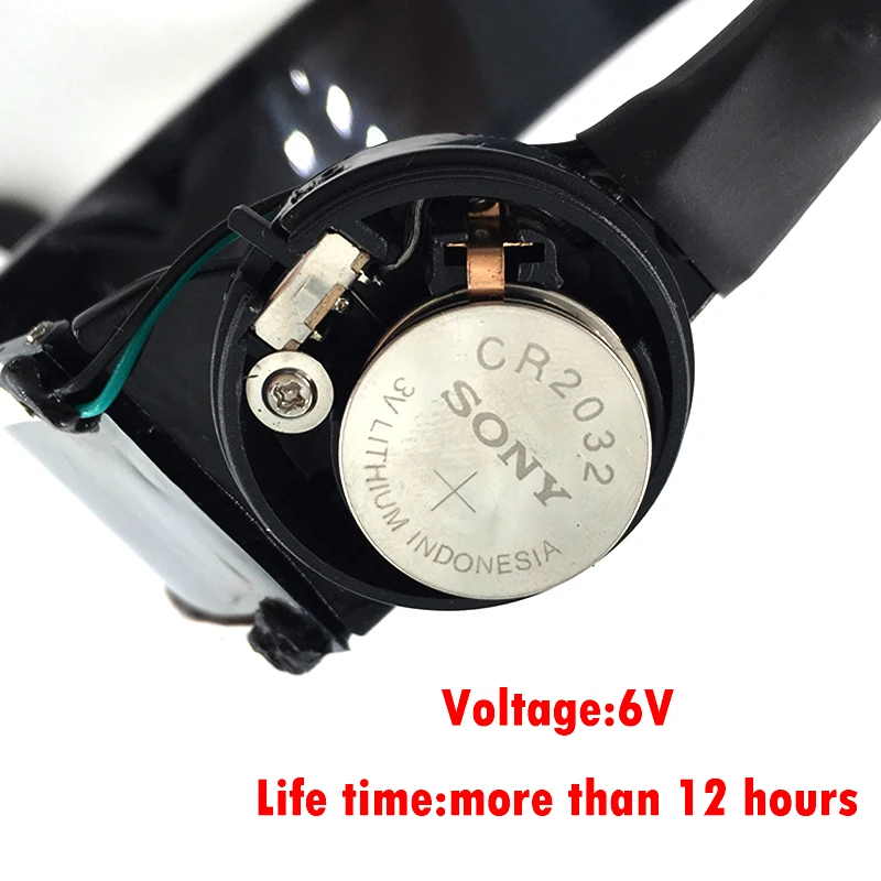 1.Place the battery : There is one battery compartment on the left and right sides. Slide back the battery cover to open it , and place 1 pcs CR2032 button battery in each compartment. The battery is placed with the positive electrode facing outward. After placing the battery, close the battery cover.