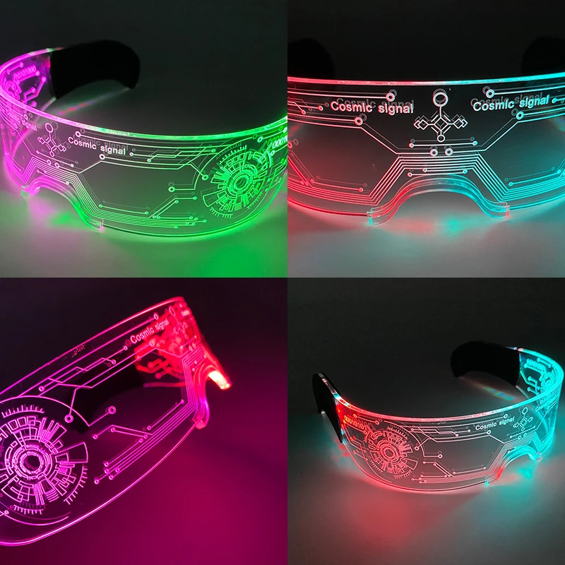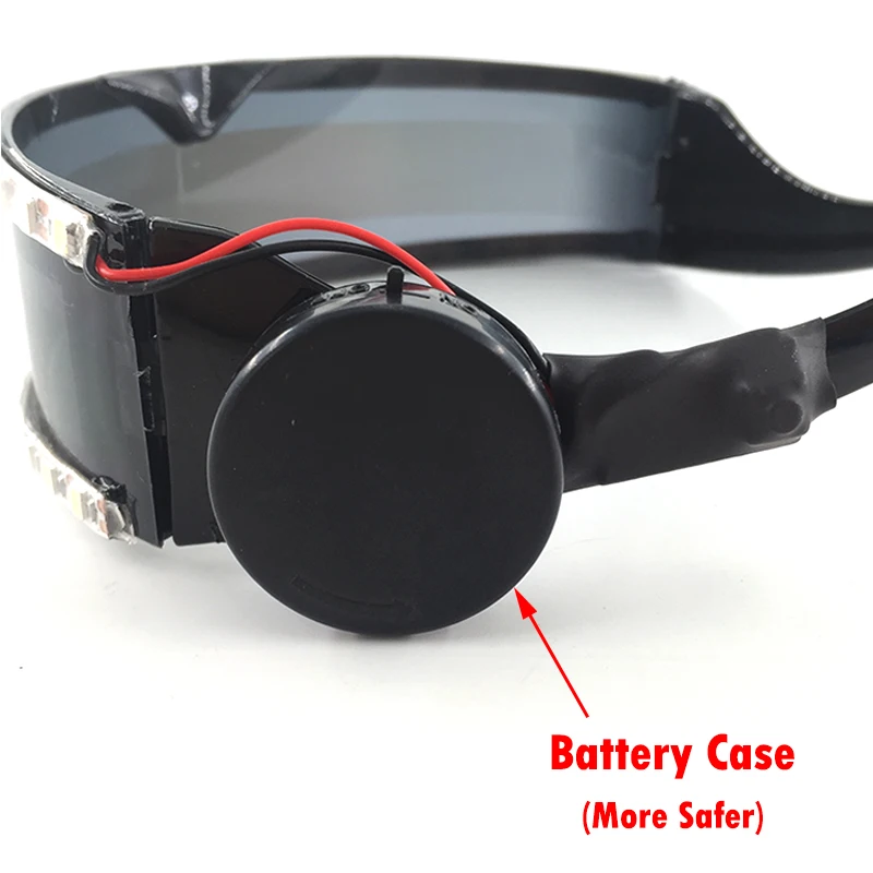 2. Select the lighting mode : LED glasses is two sides controlled . Press the black button on the side, and each time you press it, the LEDs will change among below 12 lighting modes: