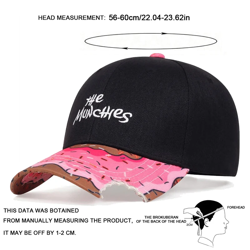 Gorras de béisbol unisex con bordado de sandía MUNCHIES, primavera y otoño, sombreros casuales ajustables para exteriores, sombrero de Hip Hop, sombrero protector solar
