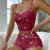 • Traje para el hogar:Este conjunto de camisola y pantalones cortos con estampado de cerezas es un traje completo para el hogar, que brinda comodidad y conveniencia.