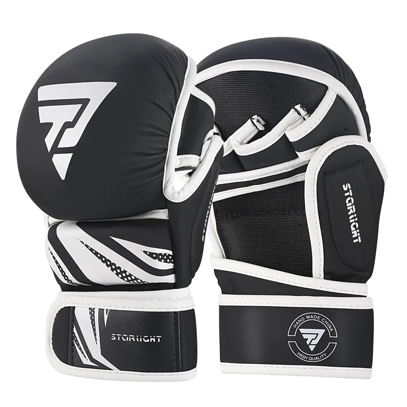 Guantes de boxeo Guantes MMA Guantes de entrenamiento Muay Thai Boxer MMA Equipamiento de boxeo de lucha Medio manoplas Cuero PU Negro/Rojo