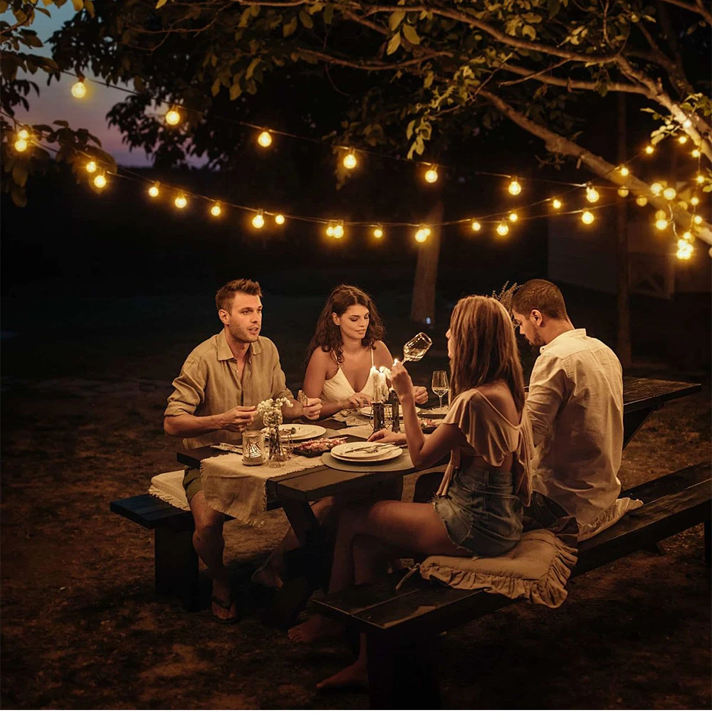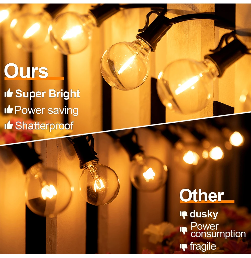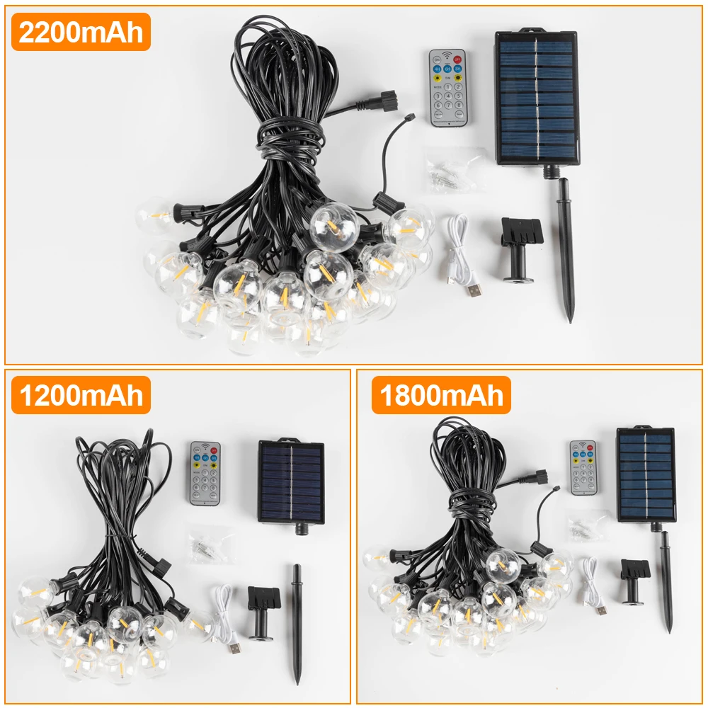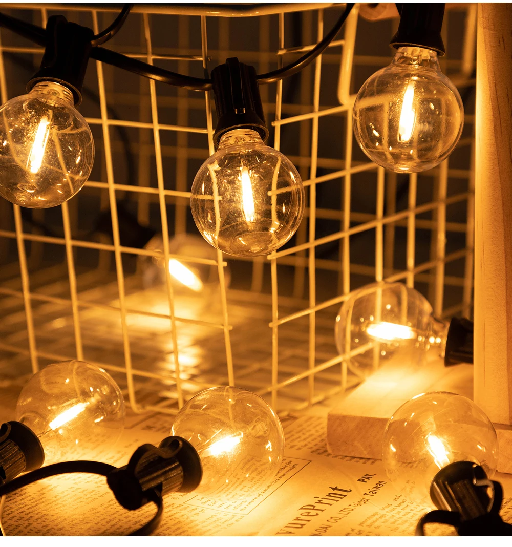 Guirnalda de luces solares para exteriores G40, guirnalda de luces LED solares, globo de 24V, luces colgantes impermeables para jardín, patio trasero, cafetería