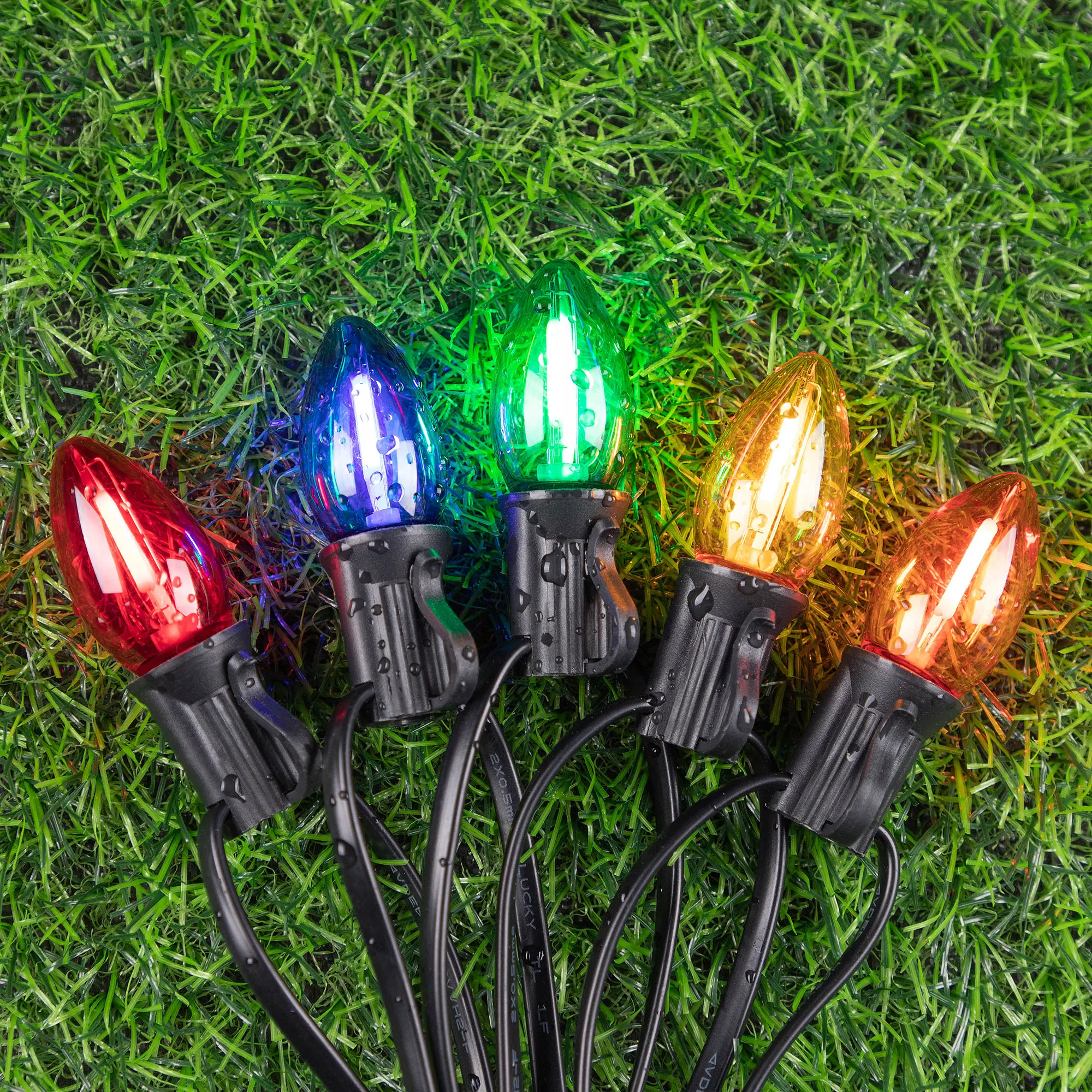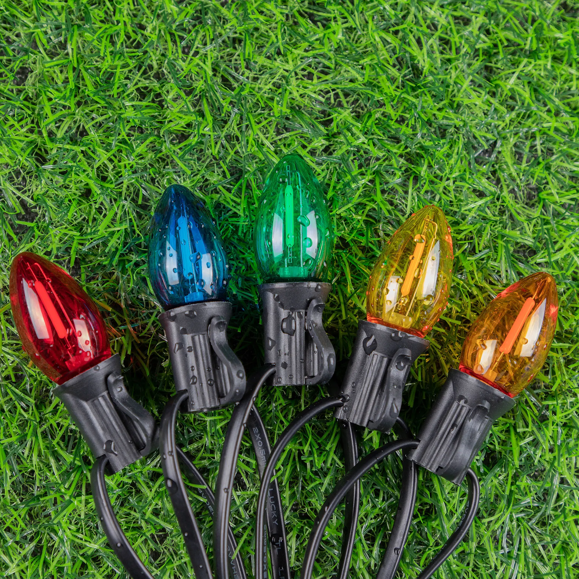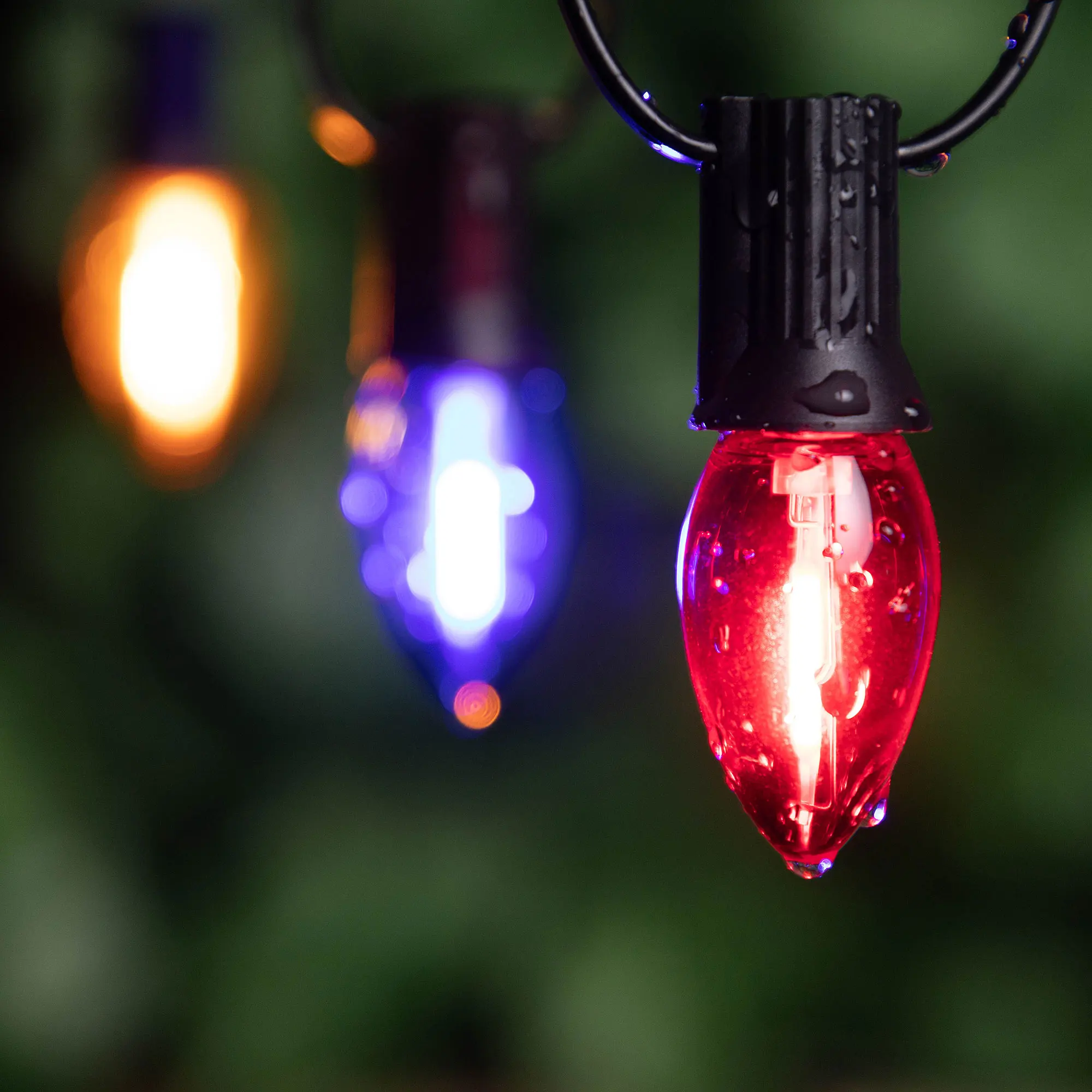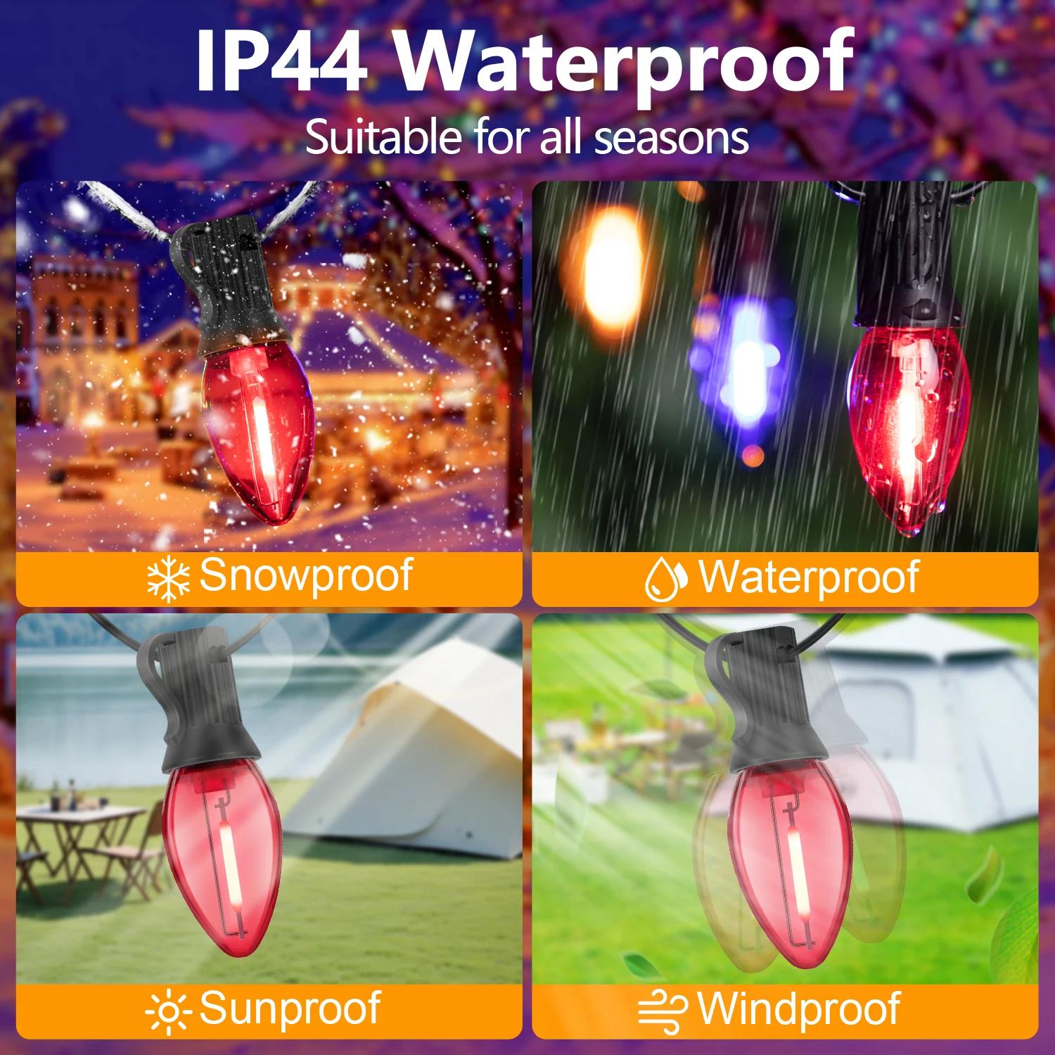 Ahorro de energía: 1 W por bombilla LED C7, más ahorro de energía camparada con bombillas incandescentes de vidrio tradicionales, cadena de luces navideñas LED con eficiencia energética de hasta el 80%, brillo regulable y vida útil de hasta 25000 horas;Las bombillas con colores vibrantes nunca se desvanecerán, astillarán ni se agrietarán.