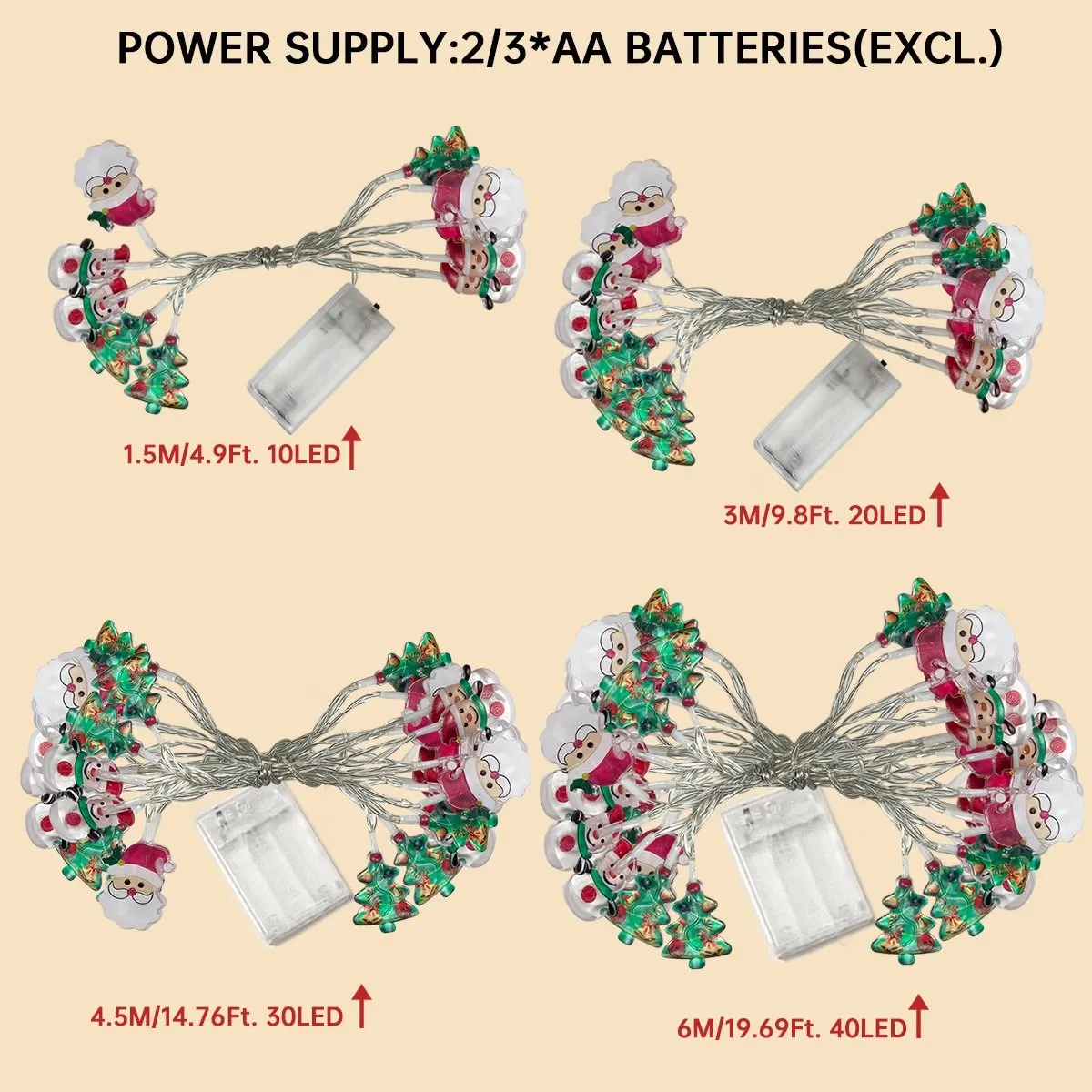 Guirnalda de luces de ambiente navideño con muñeco de nieve, árbol y Papá Noel, 10/20/30/40LED, lámpara de hadas para decoración navideña interior del hogar, 1 ud.