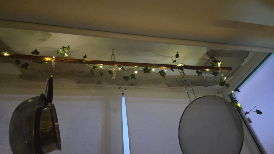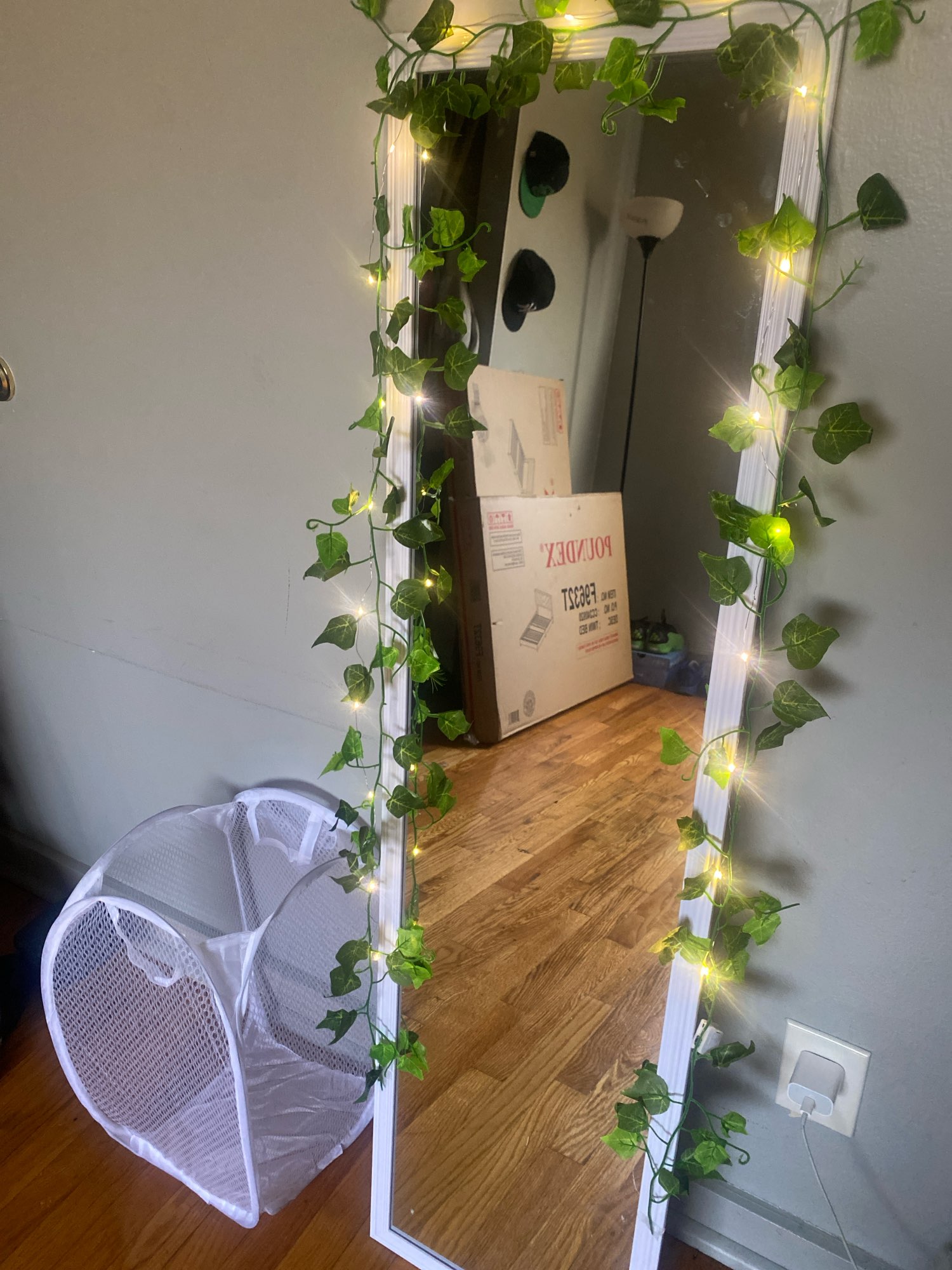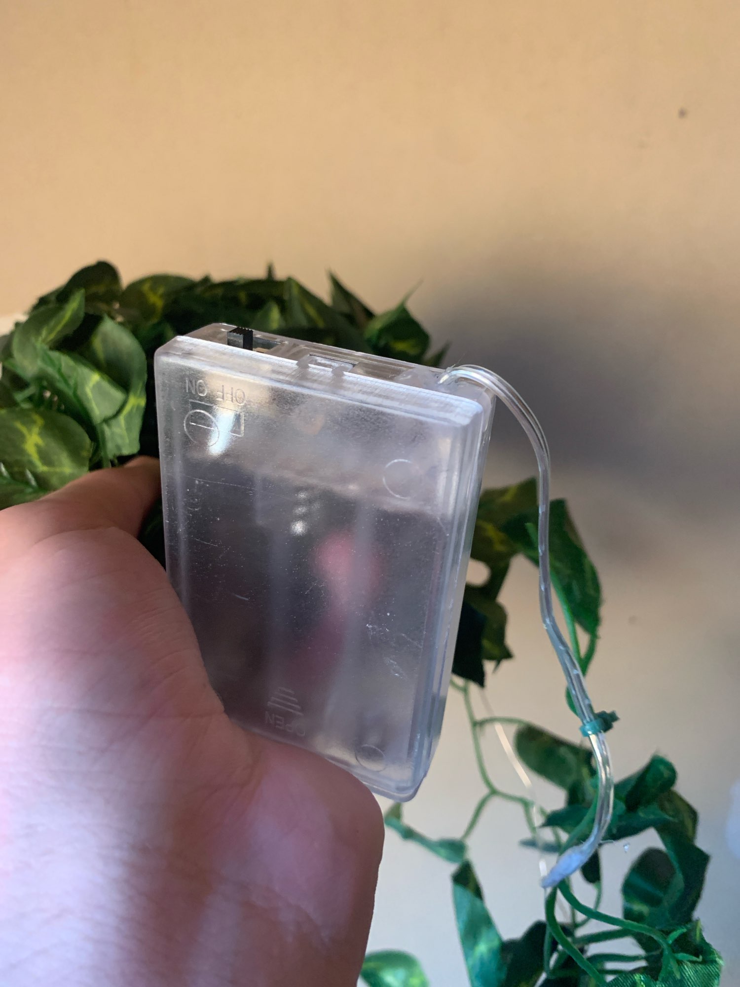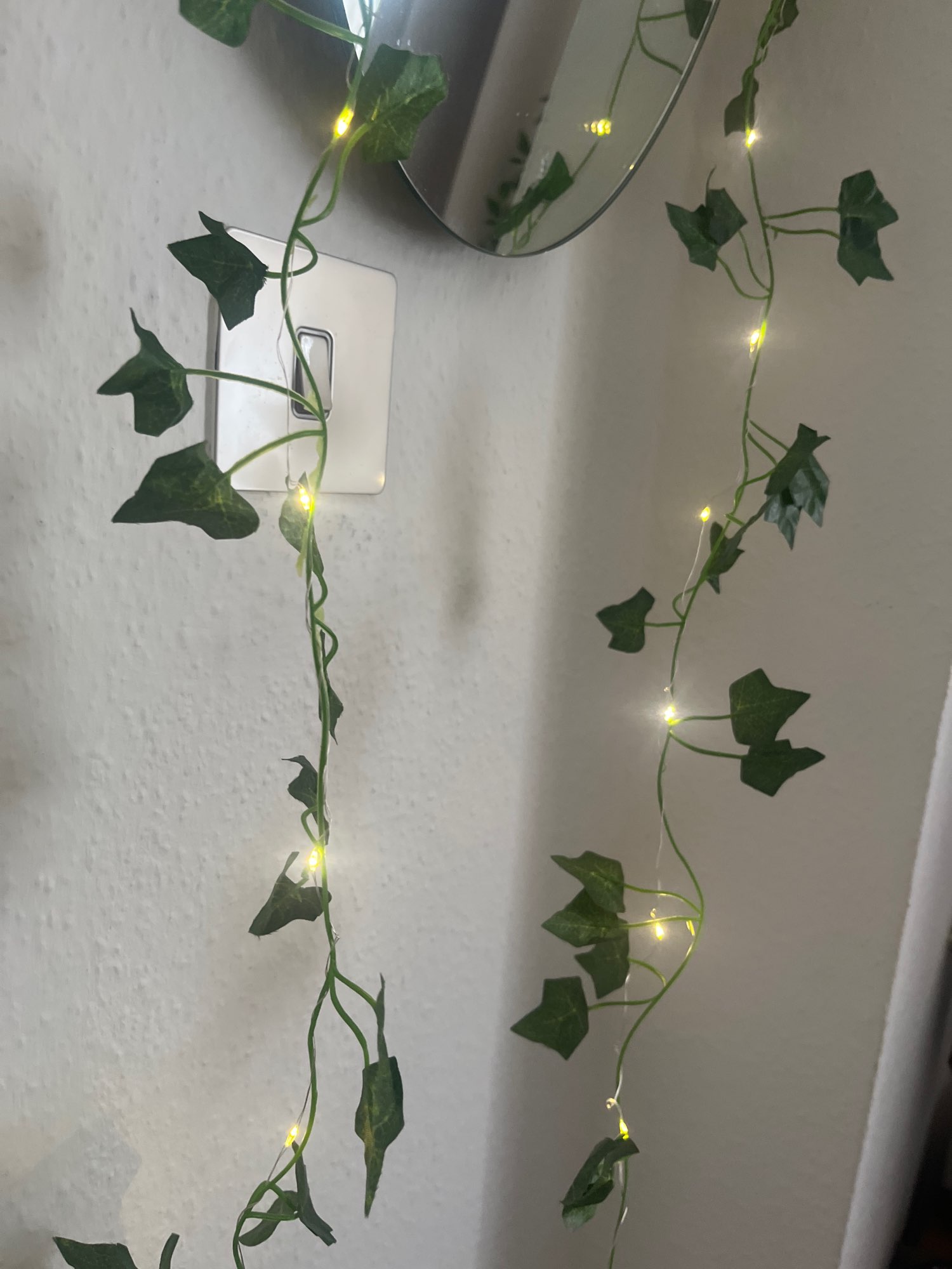 Enviaron un poco de plástico, la guirnalda de hojas y la guirnalda de luces no están unidas entre sí. Muy fácil de montar o no. Usé ambas piezas de manera diferente.