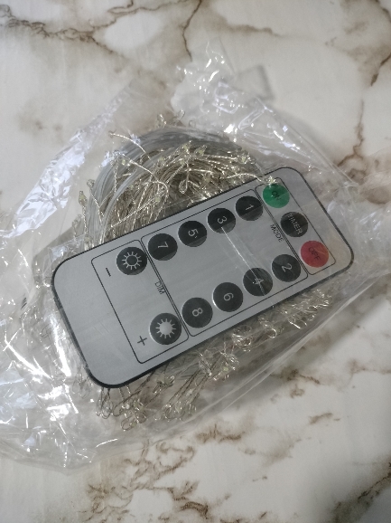Todo perfecto, el control remoto incluye 8 juegos de luces con un temporizador para apagar.