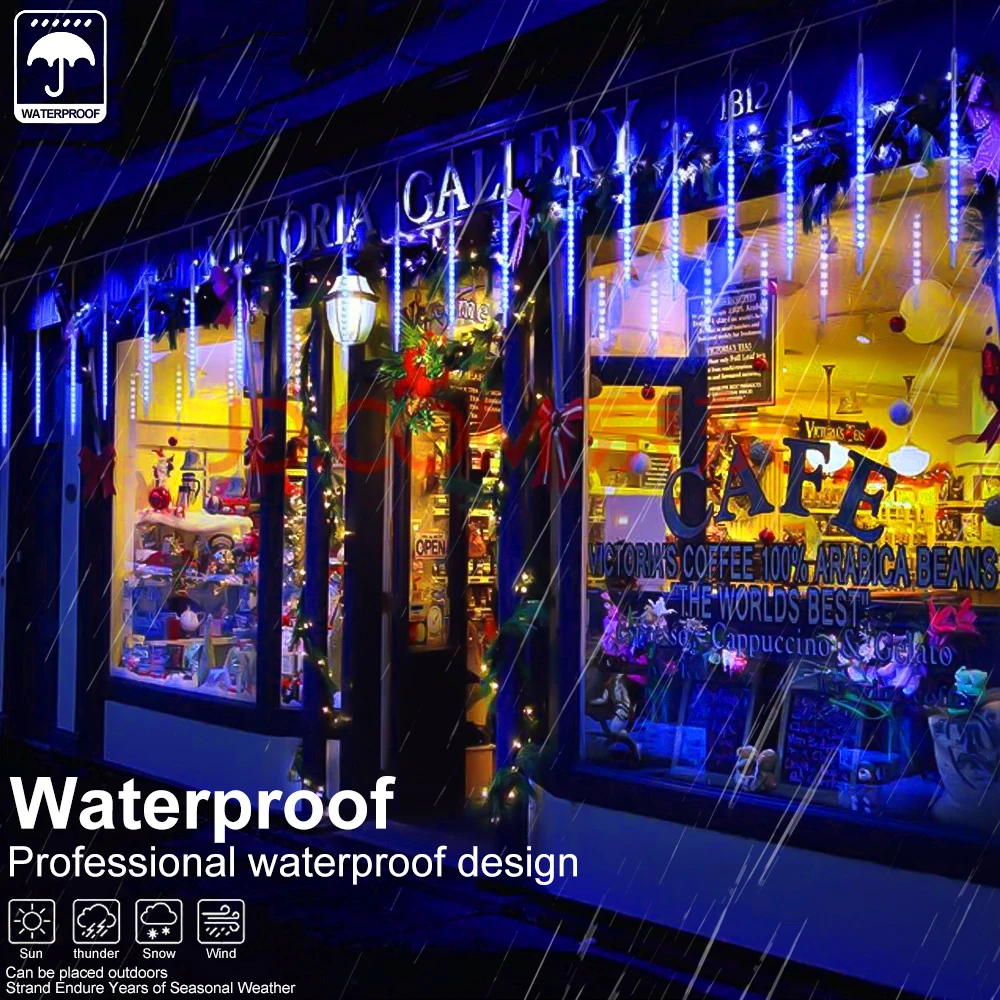 Luces decorativas Amplia aplicación: las luces LED de lluvia de meteoritos buenas para cualquier ocasión son absolutamente llamativas.Son perfectos para decorar árboles a lo largo de la calle/parque/río, colgados a lo largo del techo.Ideal para fiestas, patios, patios y jardines. ¡Convierte tu jardín en un lugar mágico secreto con las luces Snow Fall!¡Observa cómo caen como nieve en la vida real, una noche chispeante!