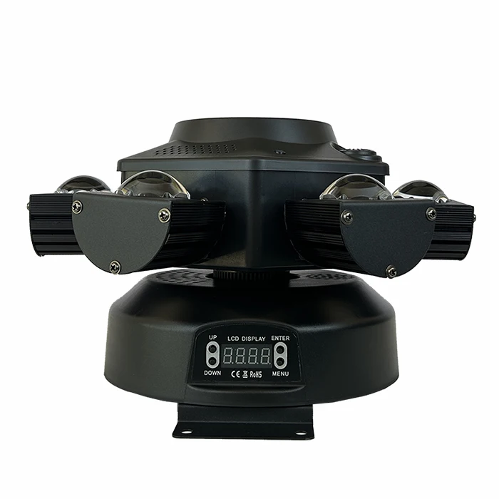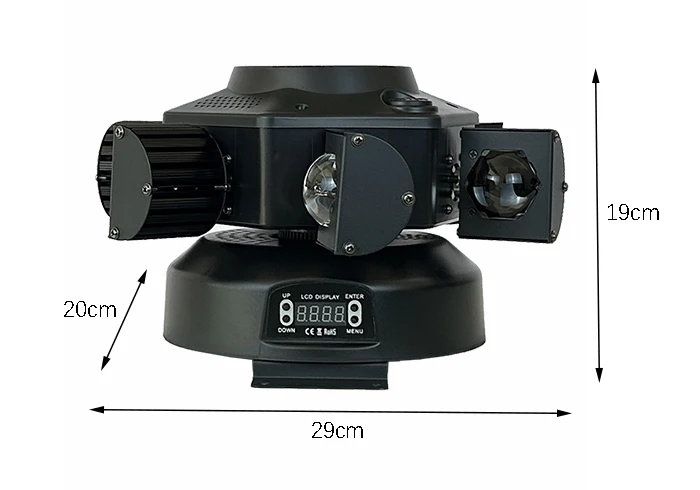 Modo de trabajo: DMX512, masterave, autopropulsado, control por voz