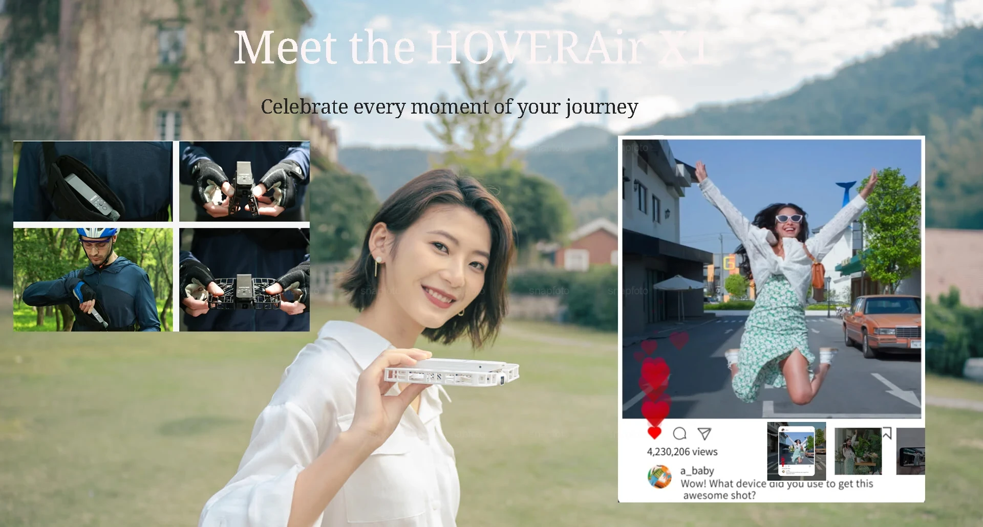 HoverAir-Dron volador X1, cámara ultraligera, plegable, portátil, desbloqueo, tomas avanzadas, vista Dronie para exteriores, 125g