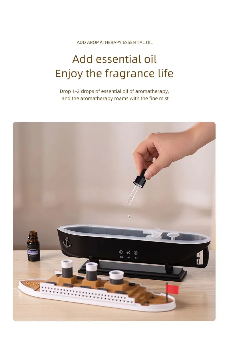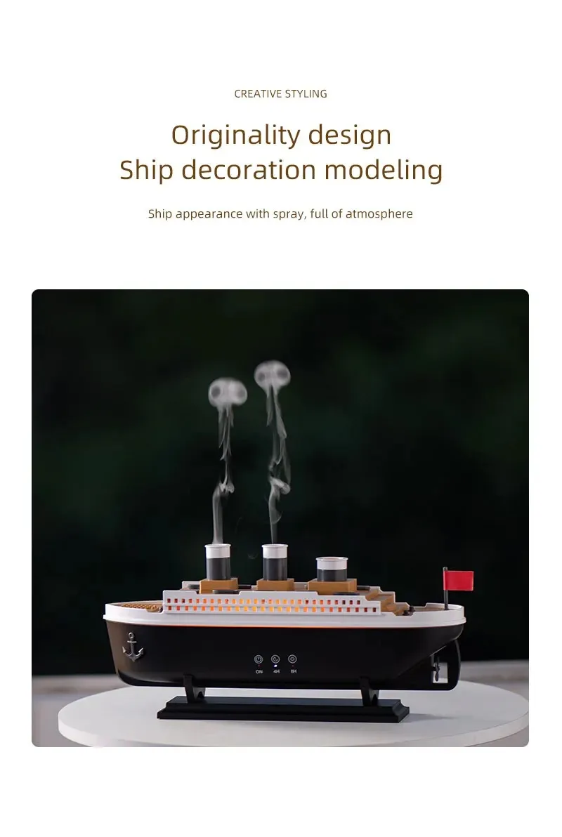 Humidificador de aire de decoración modelo de barco Titanic, difusor de aceites esenciales de 250ml, anillo de humo de medusas, difusor de Aroma en aerosol para el hogar