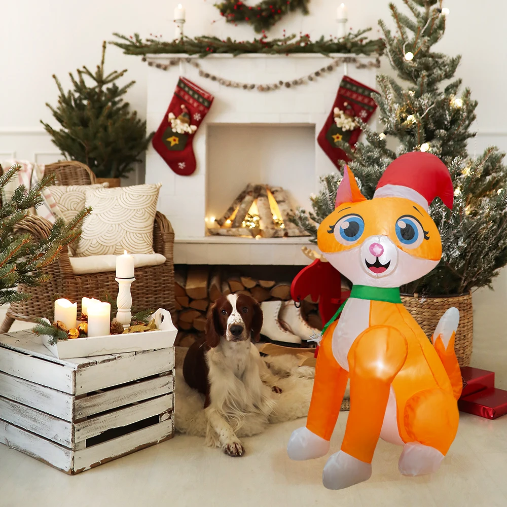 Autoinflable y duradero: el adaptador certificado UL garantiza la seguridad para uso en exteriores. Un pequeño ventilador funciona dentro de ellos cuando se enchufa, manteniendo el flujo de aire todo el día. Estas decoraciones navideñas están hechas de materiales impermeables de PVC de alto poliéster, que es contra rasgaduras y desgarros, la excelente costura mejora la durabilidad de los inflables al aire última intervención. Te acompañarán a ti y a tu familia durante más de una Navidad.