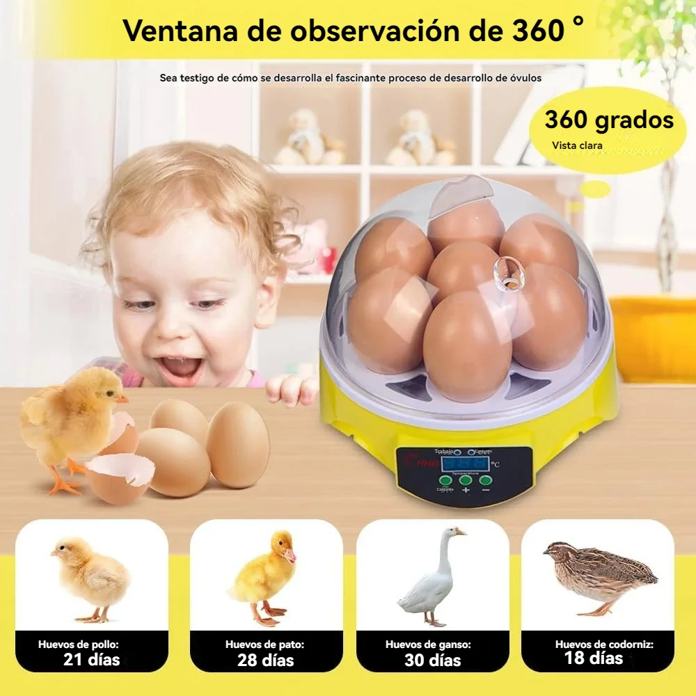 Incubadora de Huevos,Para 7 Huevos Incubadora inteligente de temperatura constante automática,para incubar pollos, patos y codornices 110V
